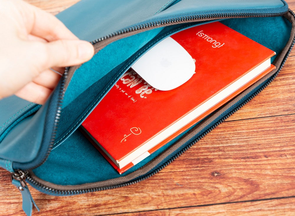 - Customizable leather design for up to 12", up to 14", and up to 16" devices