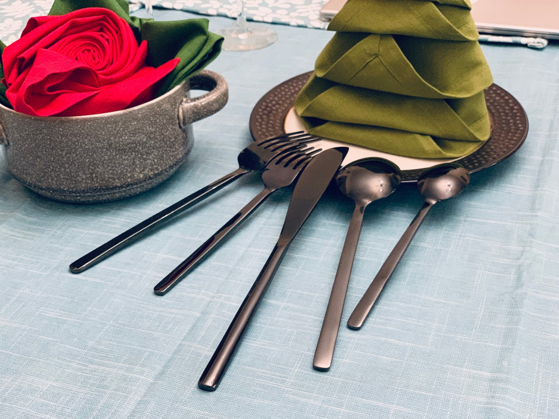 This 20-PC Stainless Steel Flatware Set Service for 4 provides a luxurious touch to any dinner table, thanks to its PVD Titanium Black coating. Each piece is handcrafted for a modern look and superior longevity; the set includes a 9" table knife, 6.5" teaspoon, 7.6" tablespoon, 6.2" salad, and 8.2" dinner fork, together accommodating a pleasant dinner experience for 4. Dishwasher Safe for convenient cleaning.