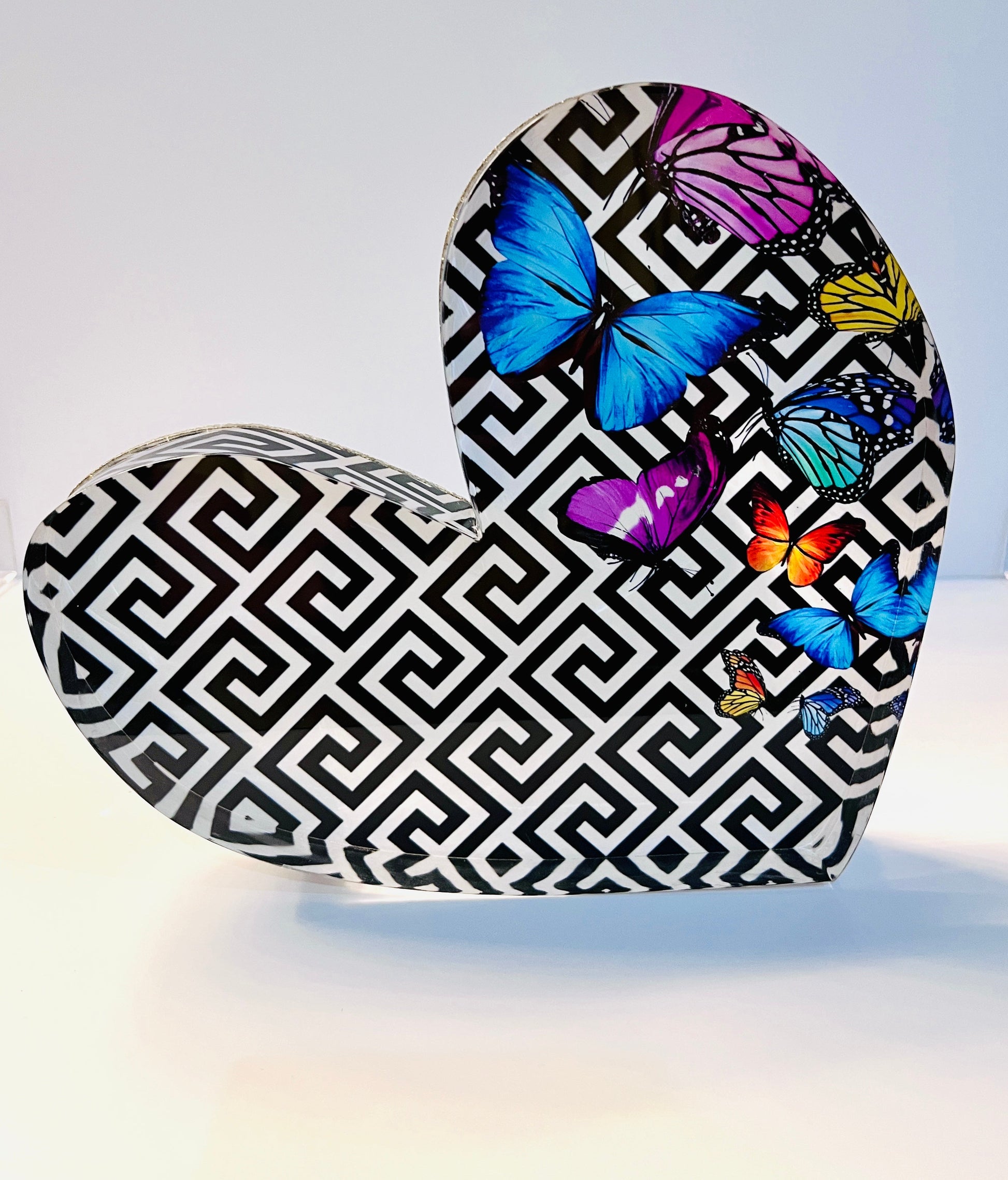Freestanding acrylic heart shaped block. Can sit on either side.