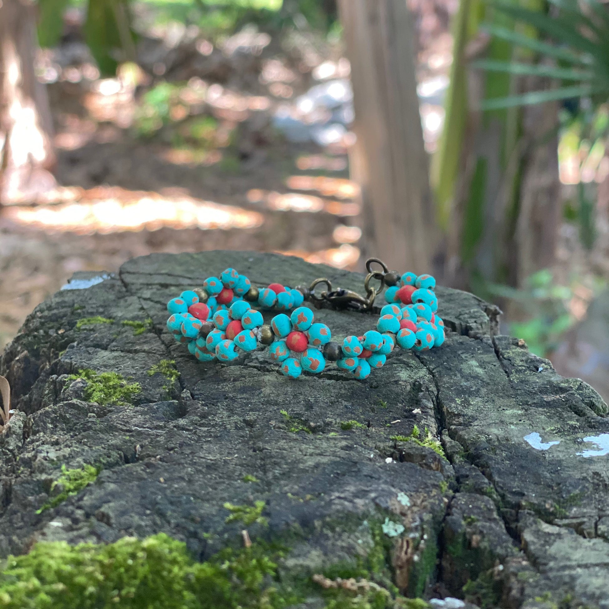 A whopping 70 Haitian clay beads are hand-rolled, painted and distressed to make this gorgeous piece! This organic look is perfect for wearing alone or stacking up with more of your favorite Papillon bracelets!