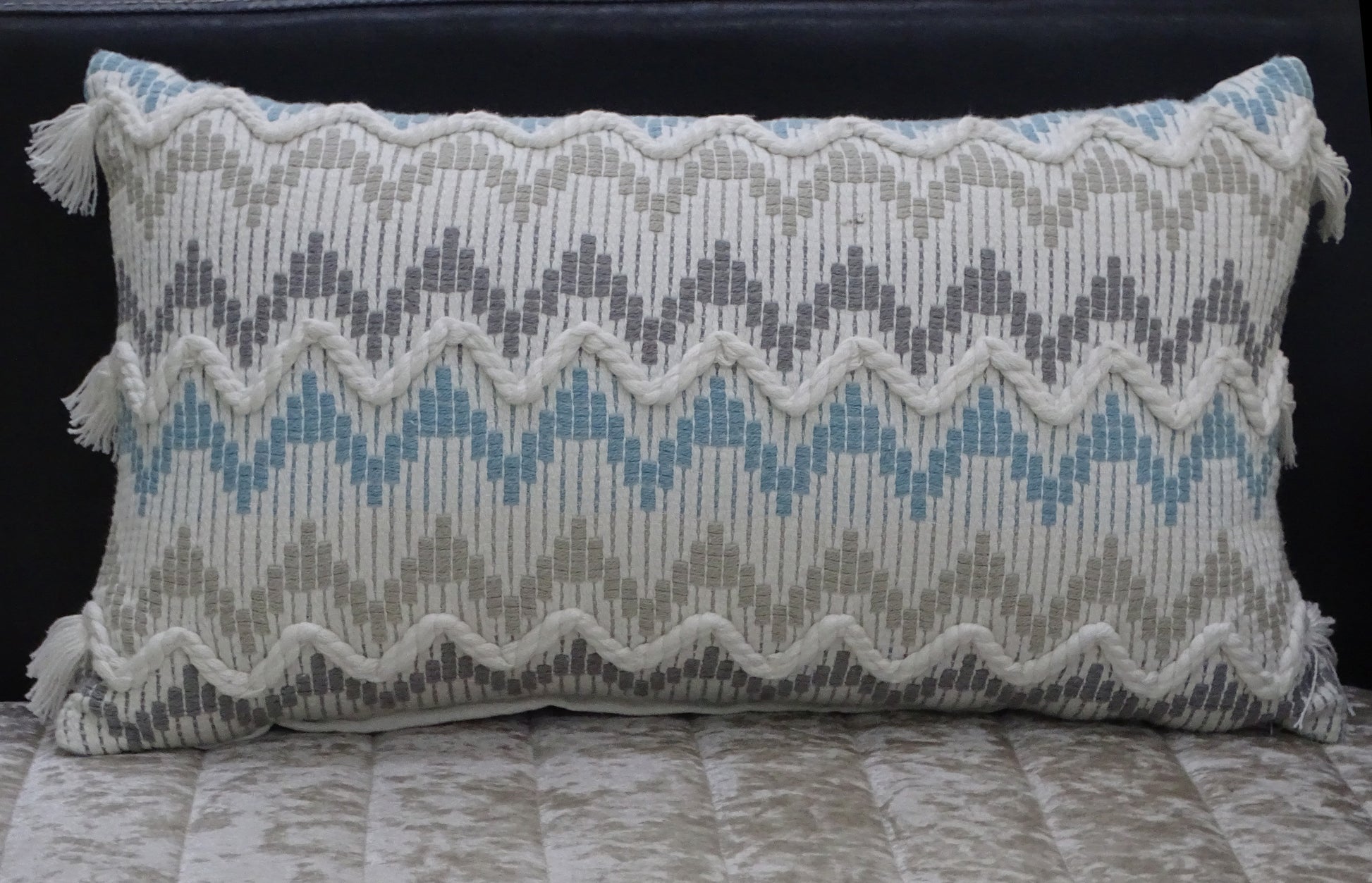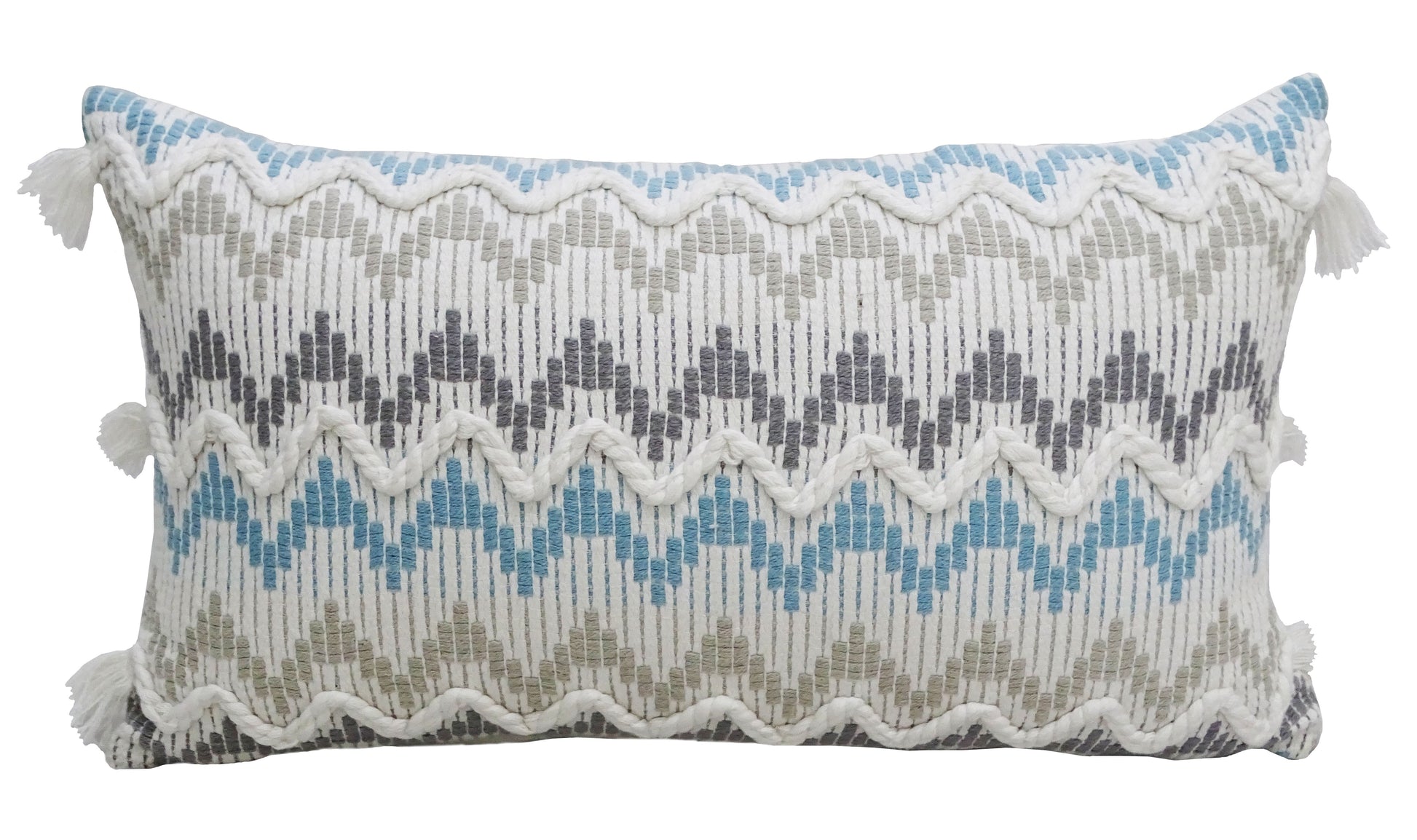 Chevron Throw Pillow for Sofa with Braid and Tassels 14"x24"