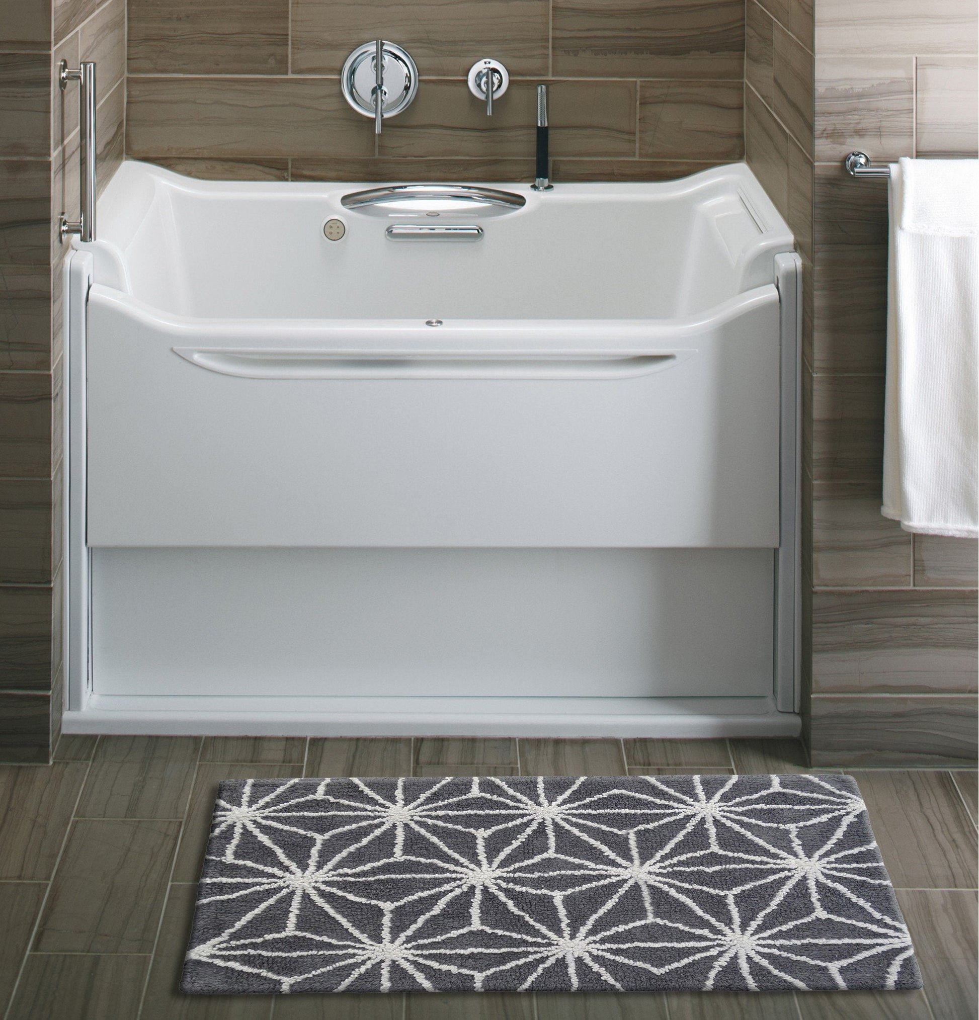 CHICOS HOME Bath Rug Geometric Pattern in Grey & Ivory