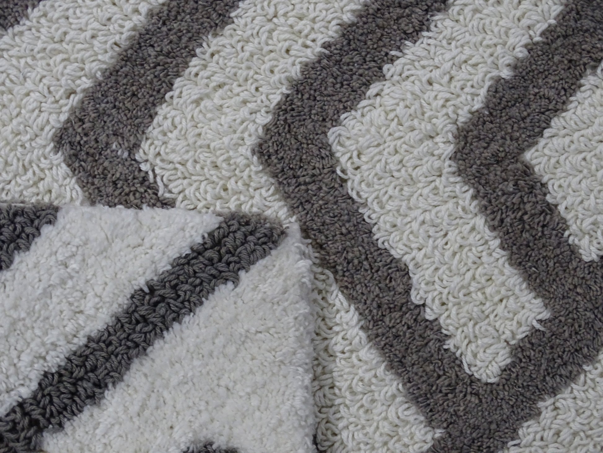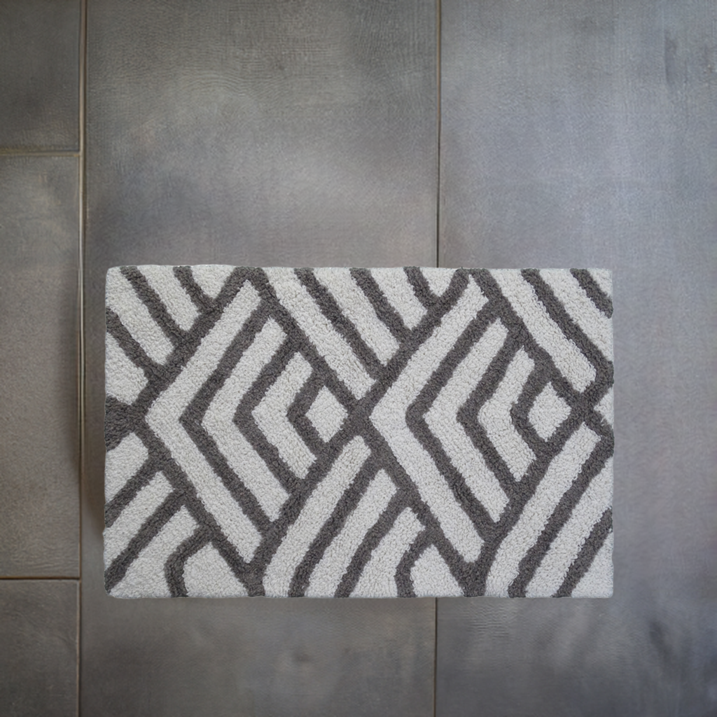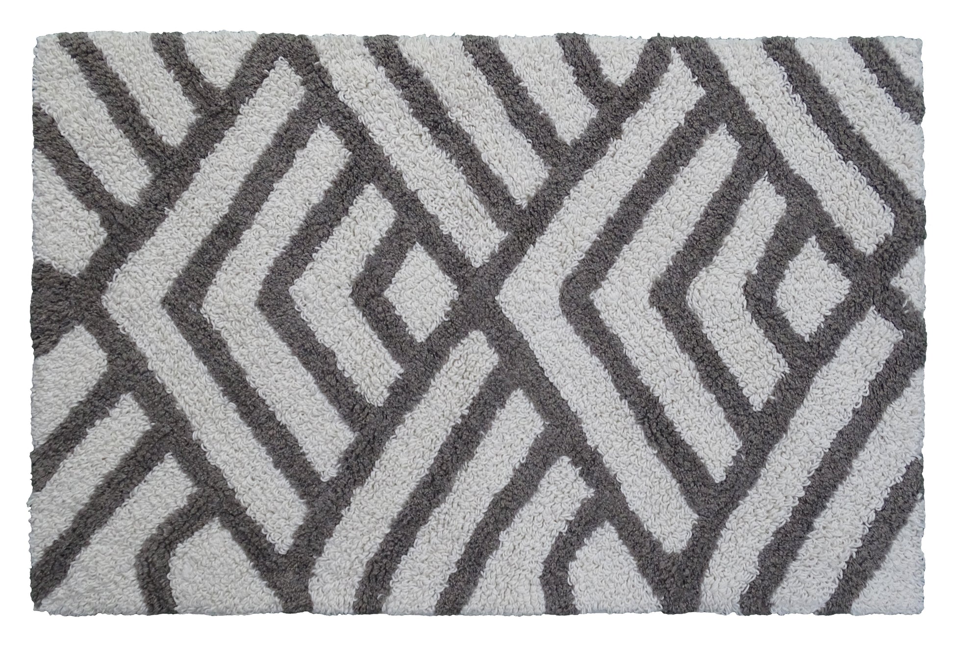 CHICOS HOME Bath Rug Geometric Pattern in Grey & Ivory