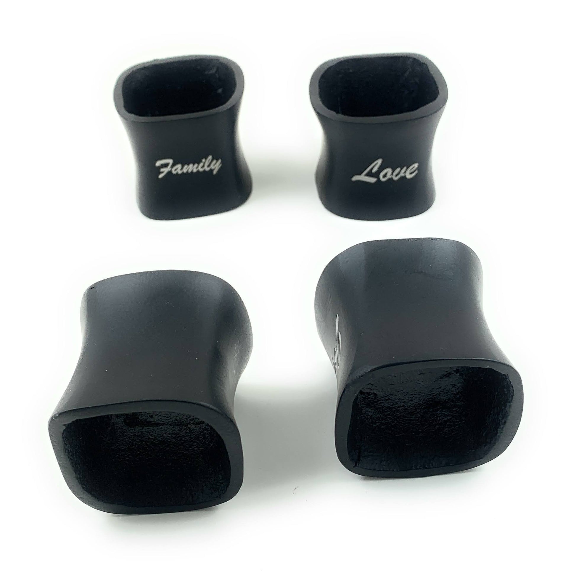 Each ring has a different word written on it; Love, Believe, Joy, Family