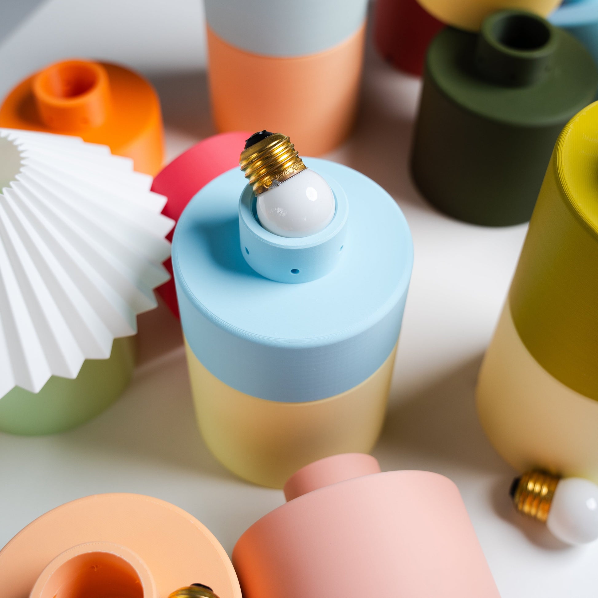 Meet the Cici Lamp, the color-blocked table lamp with playful, modular bases and a pleated, matte shade. Each lamp is made from plant-based PLA in our sunny Charleston, SC studio. The Cici Lamp arrives fully assembled and ready to use, but every base can be swapped or stacked with others to create new combinations.