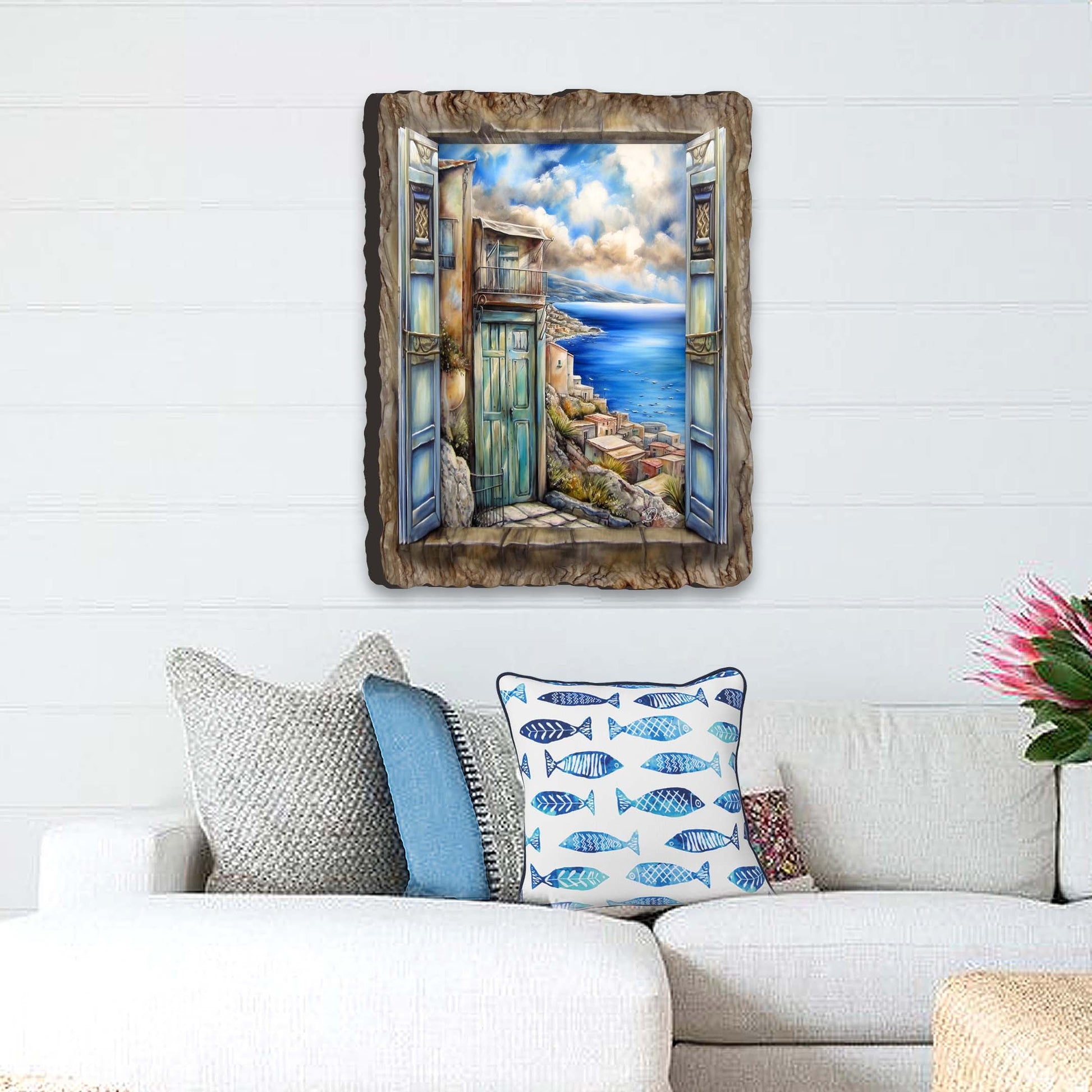 Experience the serene beauty of the coast with Coastal View Landscape Window Wall Art by G. DeBrekht. Featuring a charming old town and a captivating window view, this piece adds a touch of coastal Decor to any space. Transform your walls into a calming seaside escape with this stunning artwork.