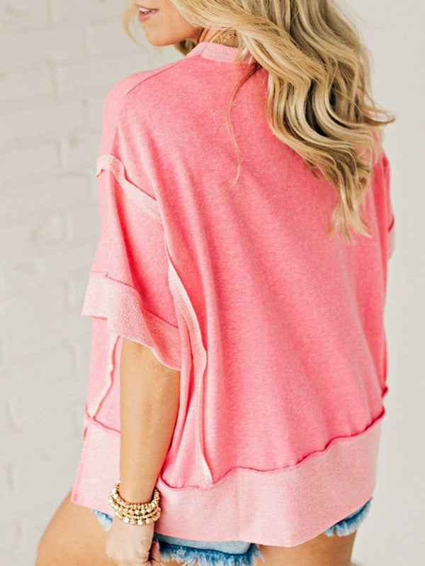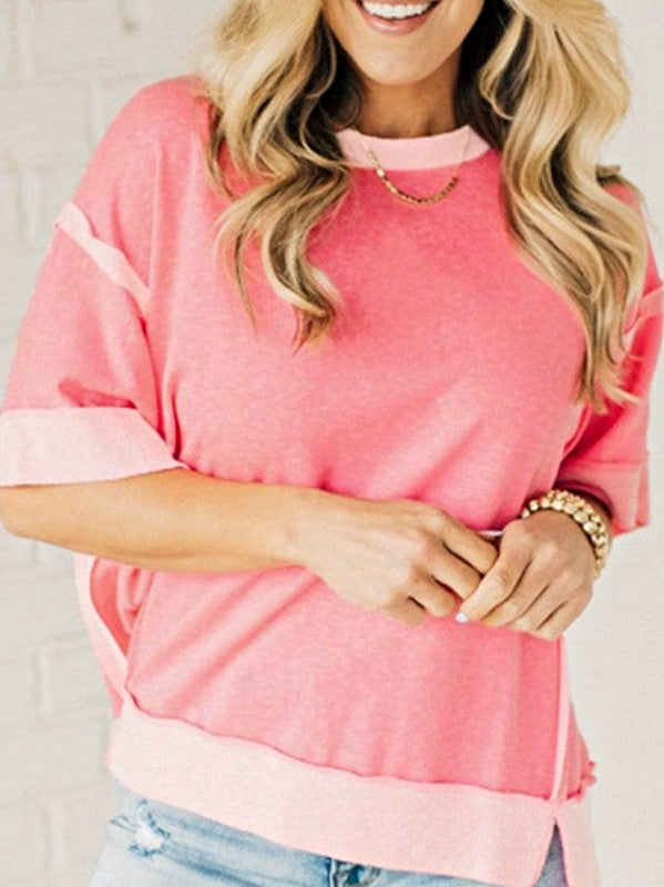 Cotton Peach Half Raw Seam High Low Side Split Top