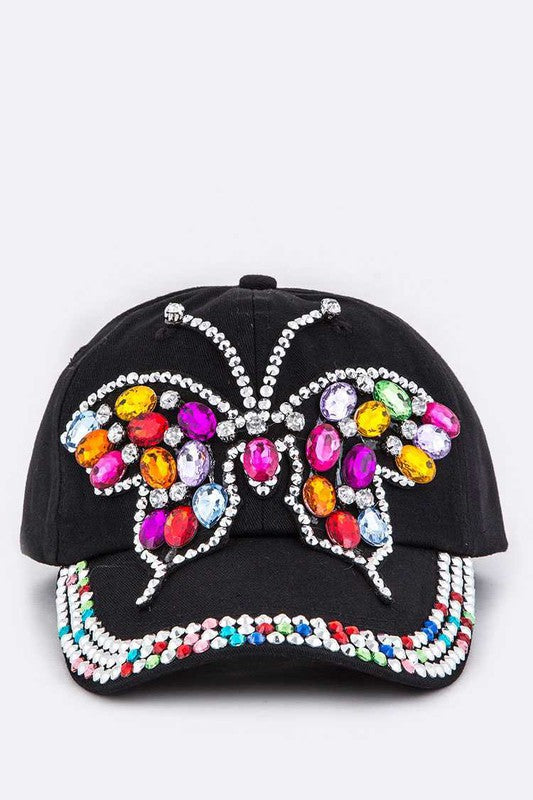 Crystal Butterfly Embelished Fashion Cotton Cap