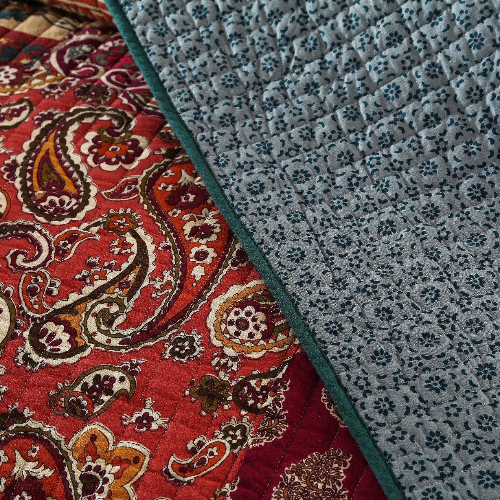 This set comes with one quilt coverlet and two pillowcases for the sizes of California King, King, and Queen.