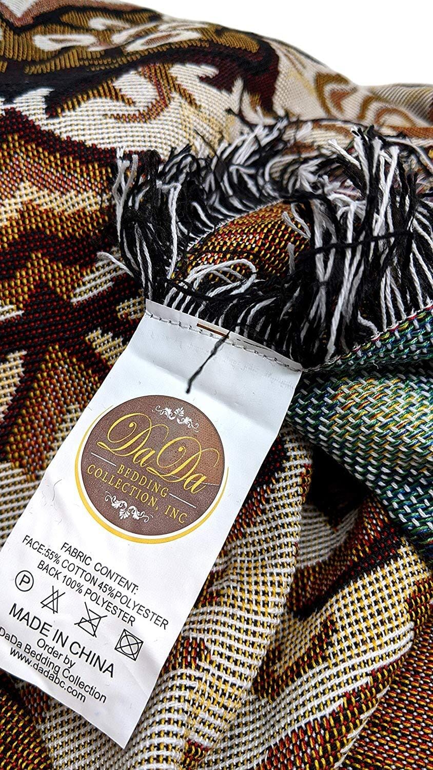 Decorate your home with our multi-purpose and versatile tapestry throw blanket in unique and beautiful woven stitched colorful golden floral designs by DaDa Bedding Collection.
