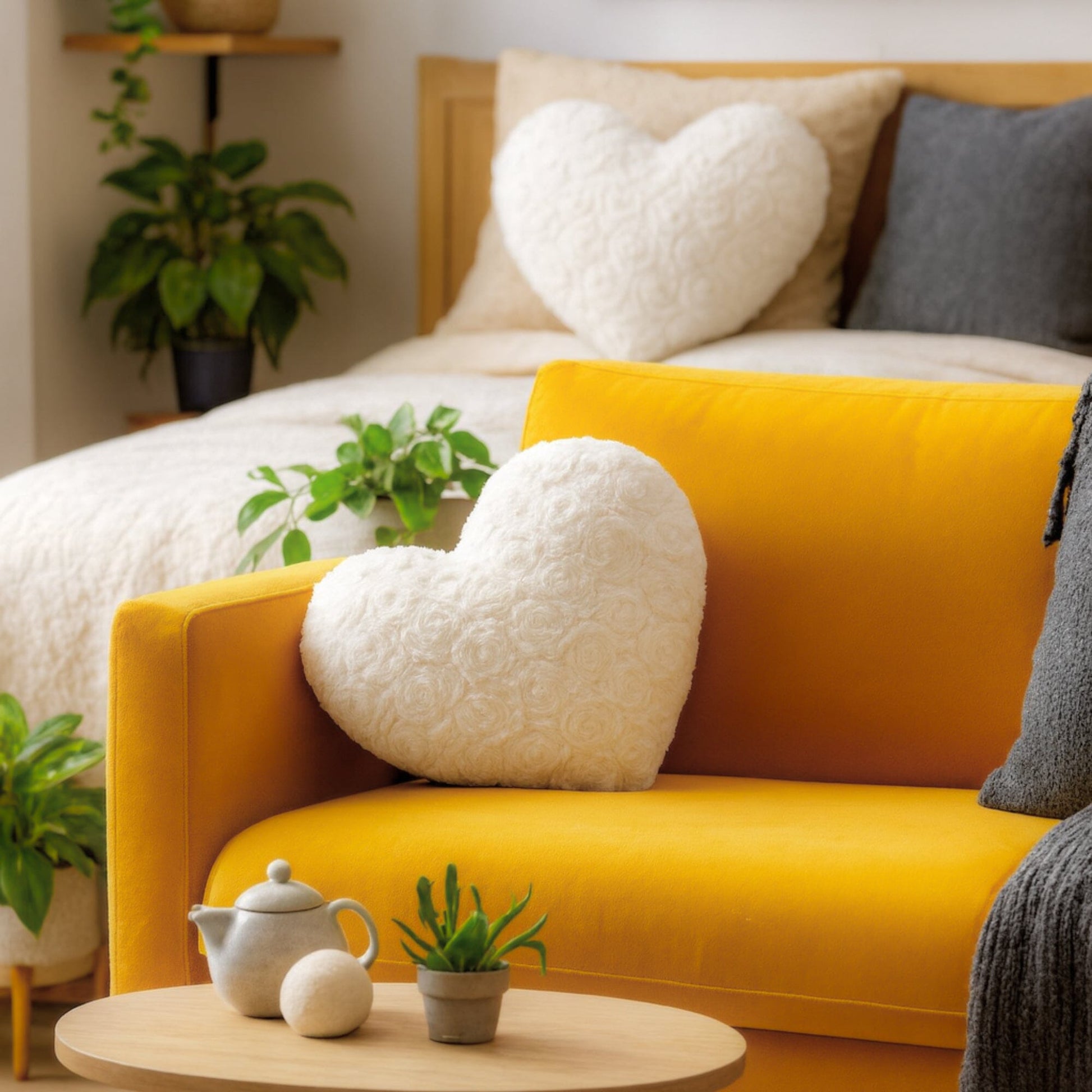 Decorate your living space with our fluffy yet cuddly cozy Sherpa heart shaped throw pillow.