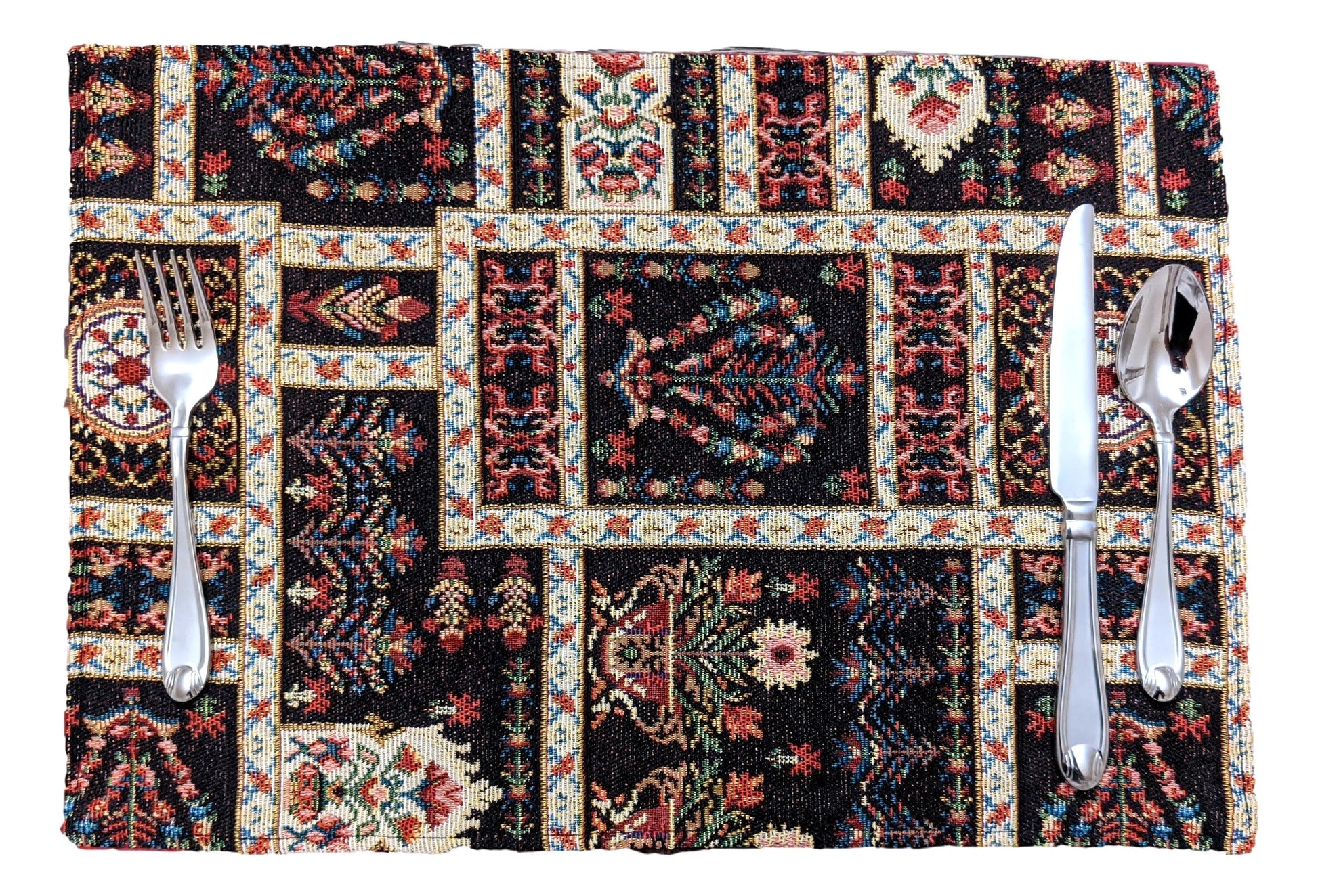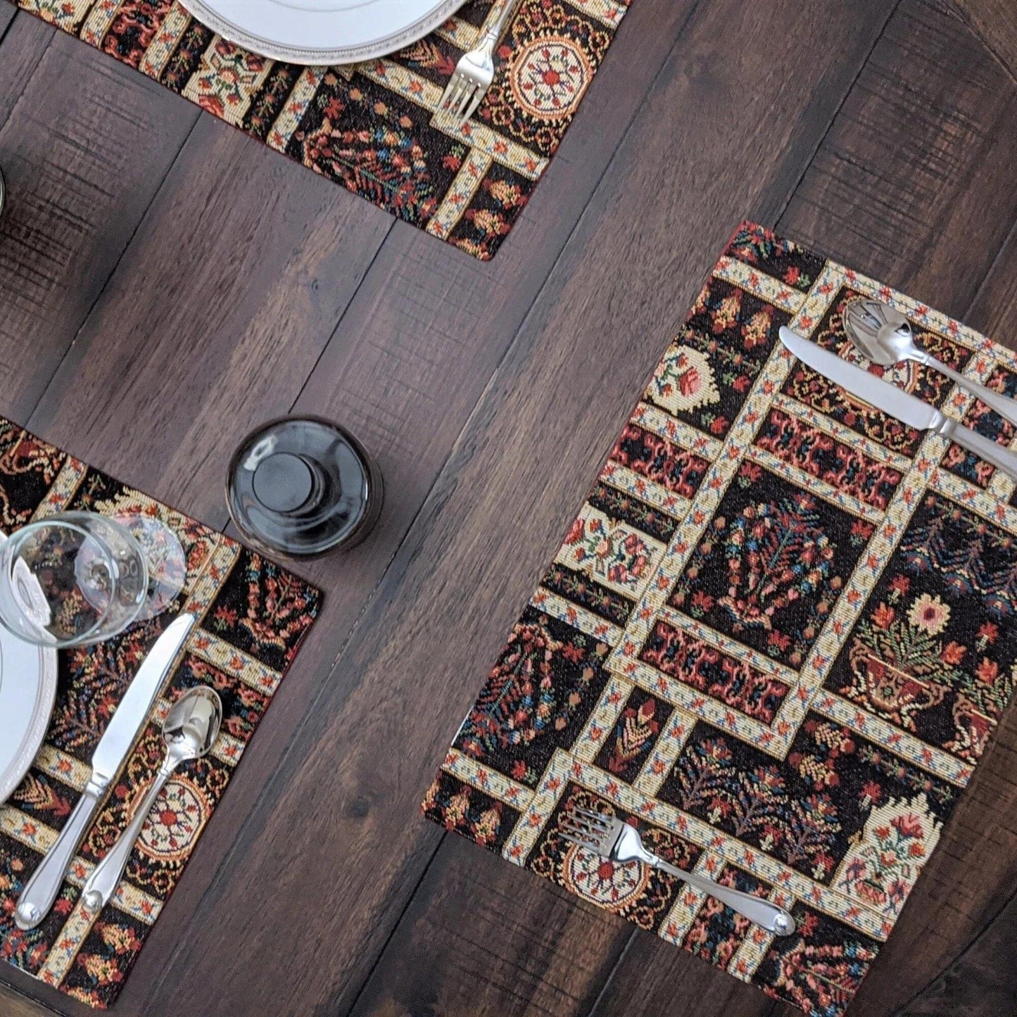 DaDalogy Bedding Set of 4-Pieces Dark Noir Mughal Floral Botanical Vintage Fleur Tapestry Placemats 13” x 19” (18197)
