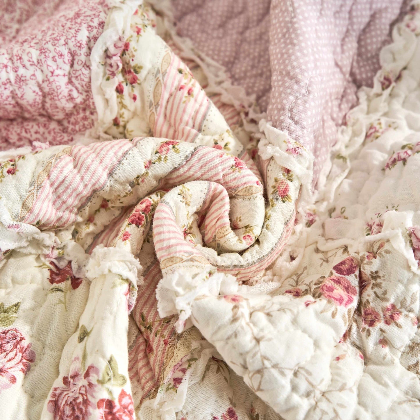 - Charming Cottage Design: Add a touch of timeless elegance to any room with this dainty country cottage-inspired patchwork quilted throw, blending soft blush pink and cream tones with intricate floral patterns for a bright and welcoming ambiance.