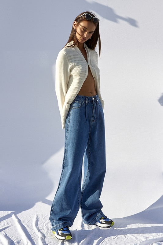 Denim Lab USA Super High Waist Wide Straight Jeans