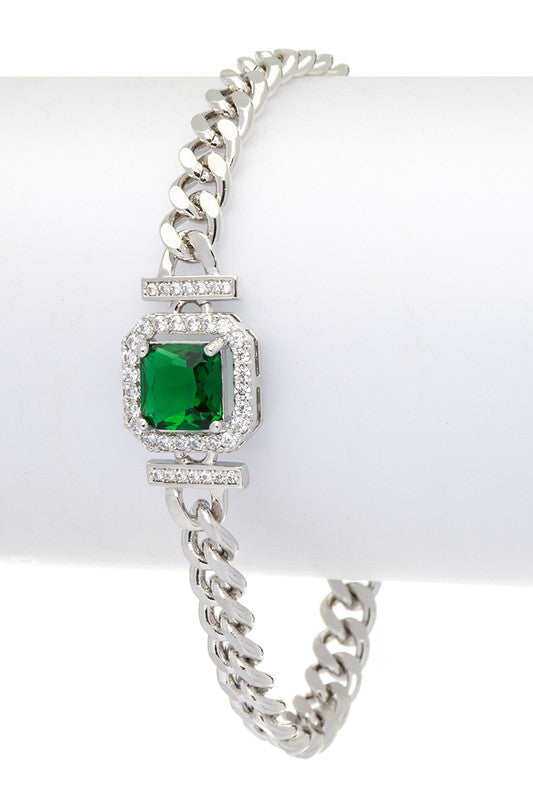 A statement piece for the discerning fashionista. The striking emerald CZ stones sparkle against the delicate chain, exuding a sense of effortless luxury and sophistication. Elevate any outfit with this must-have accessory, perfect for both day and evening wear. Treat yourself to the epitome of elegance with our Emerald CZ Stone Chain Bracelet.