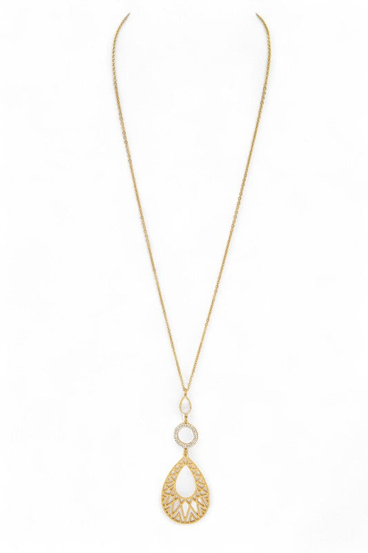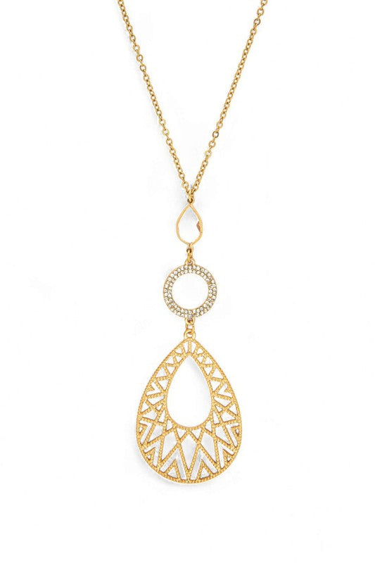 Filigree Teardrop Crystal Accent Pendant Necklace