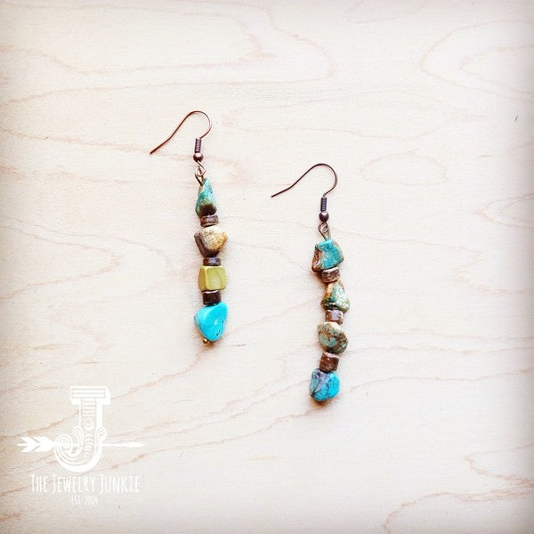 Genuine HuBei Turquoise & Wood Drop Earrings