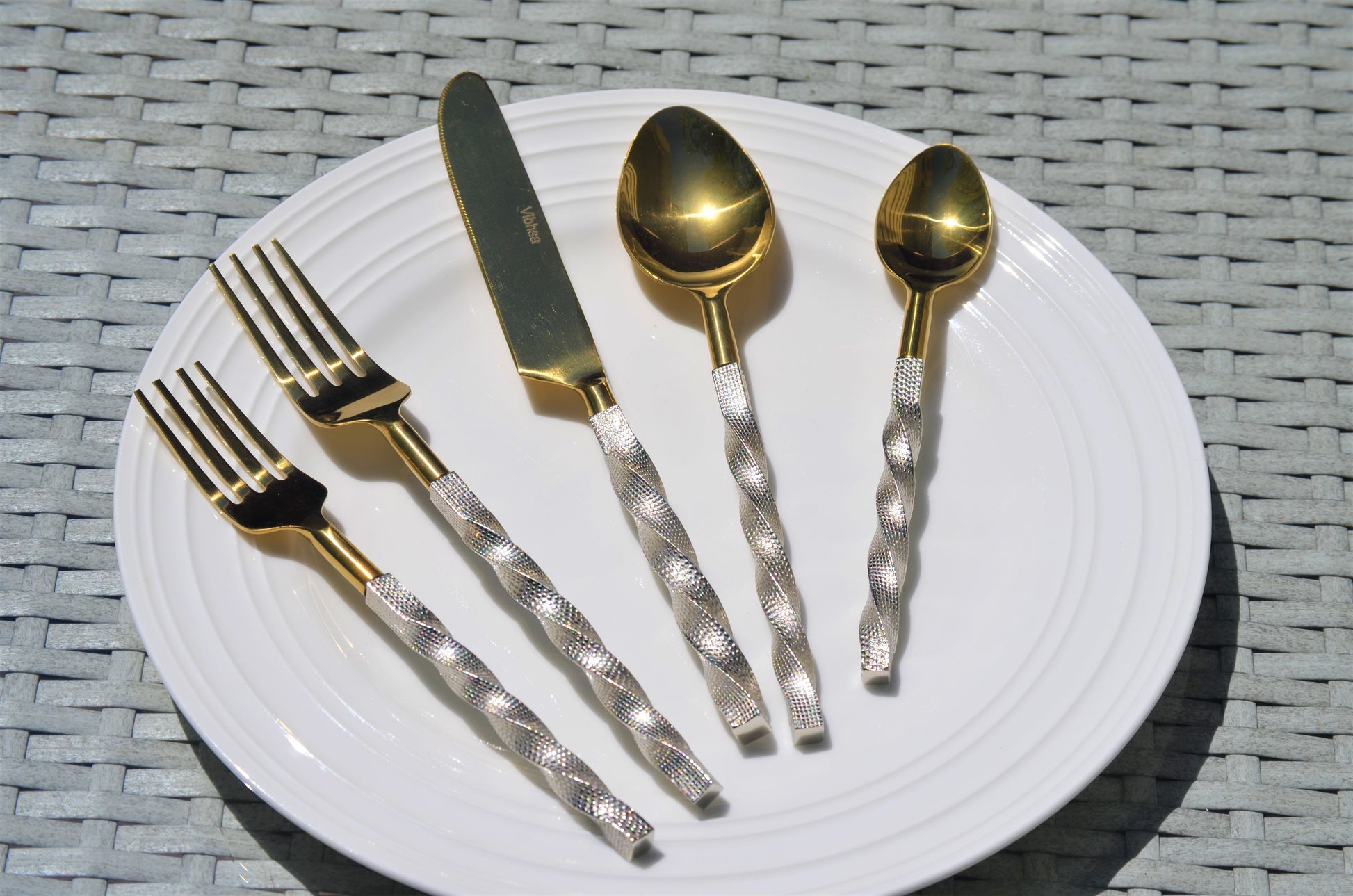 Golden Stainless Steel Flatware Set of 5 PC (Twsited)