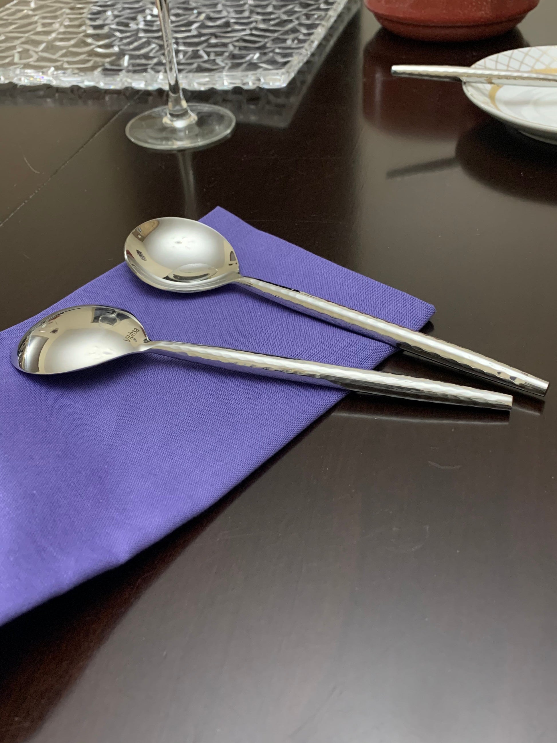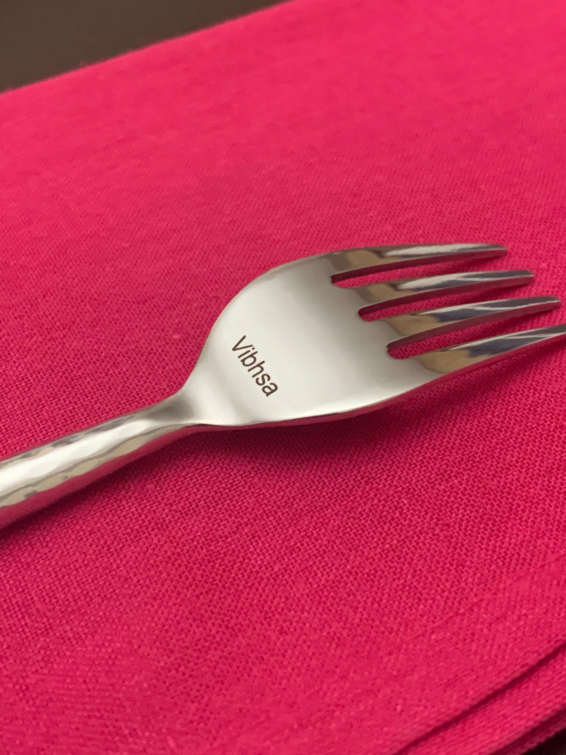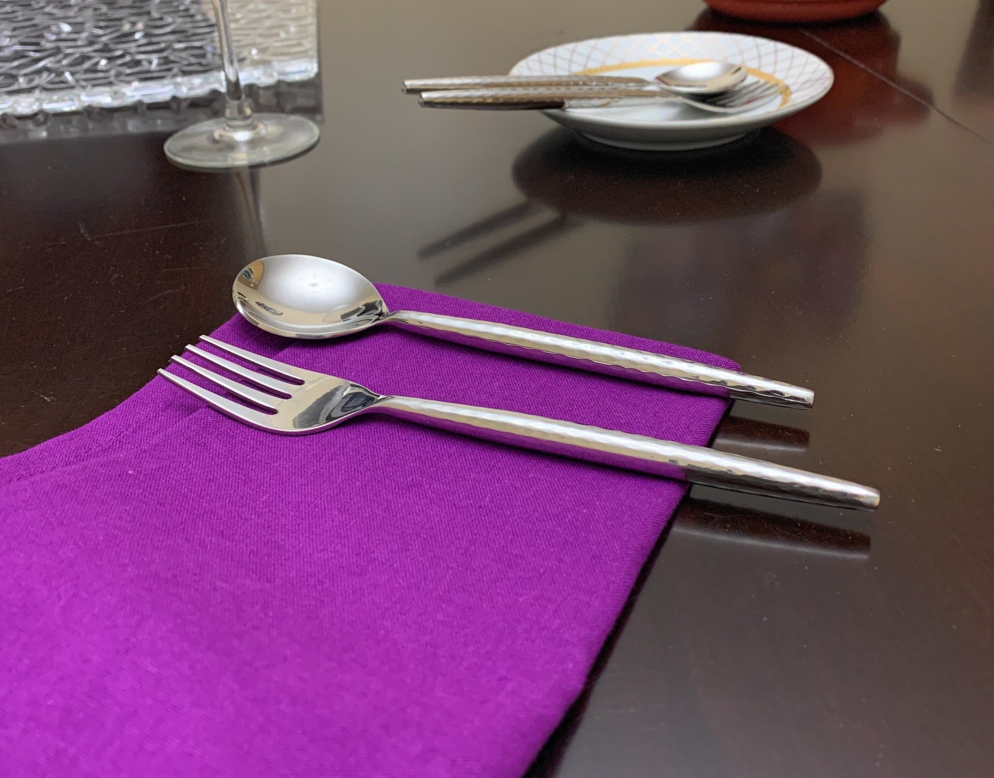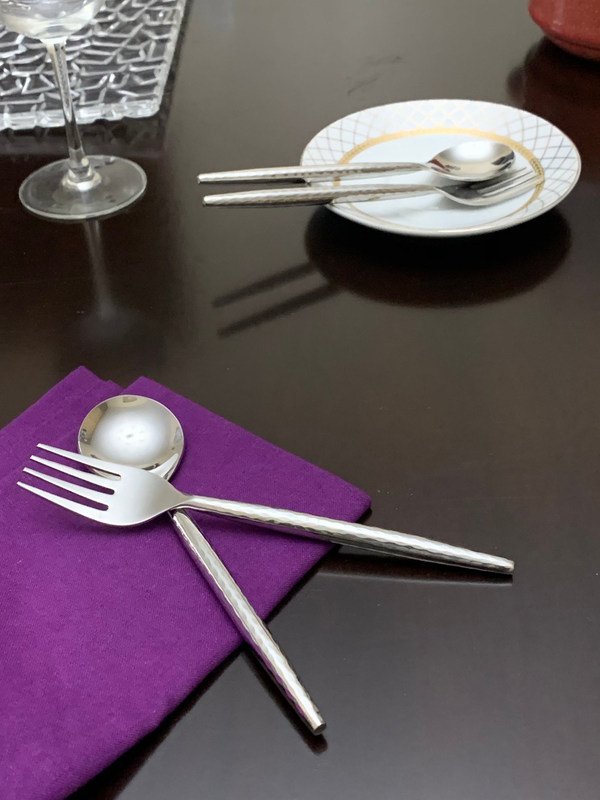 - Made by artisan Stainless Steel cutlery set. Hammered handle with High Gloss Finish gives a classic look to your parties