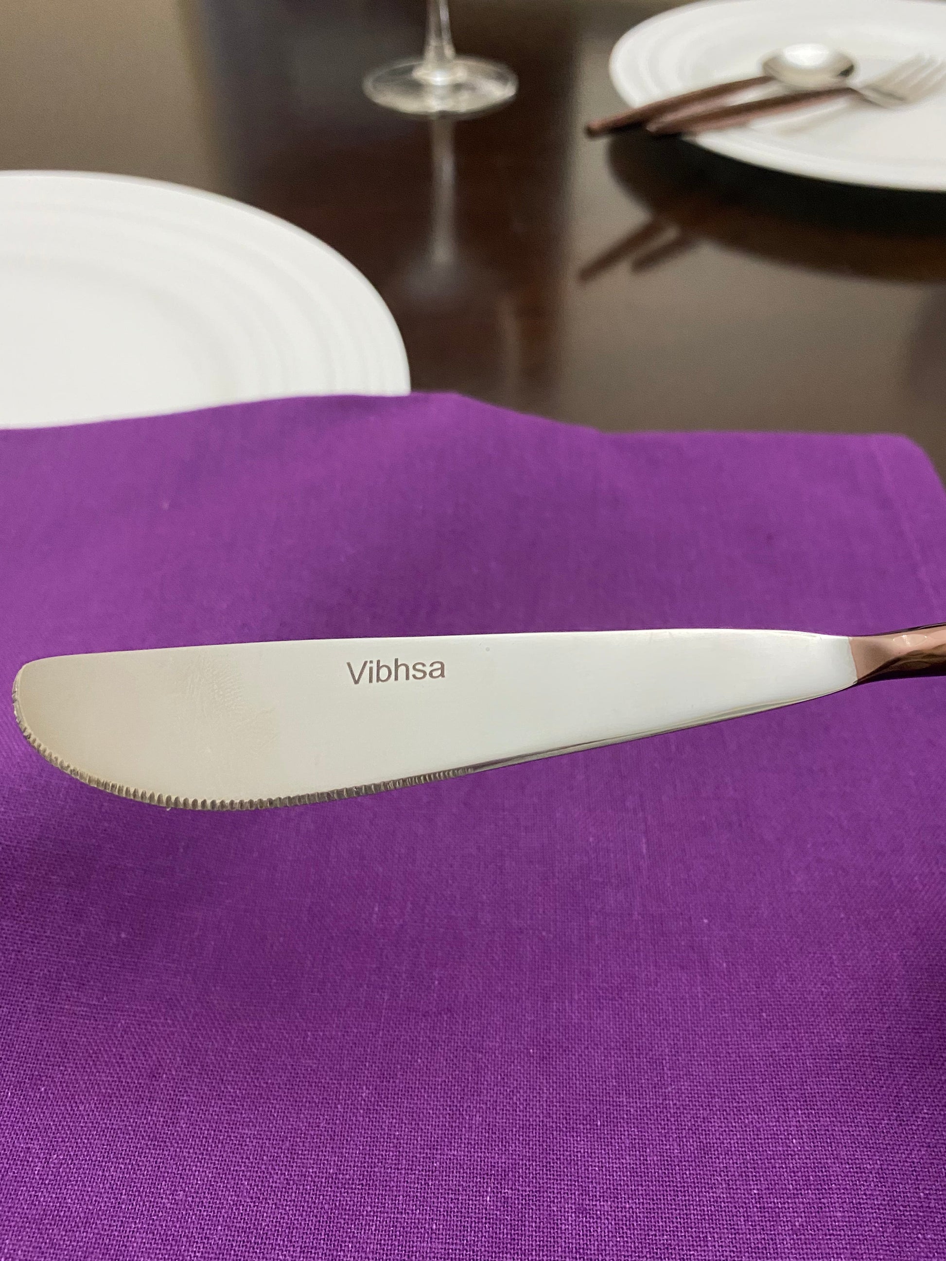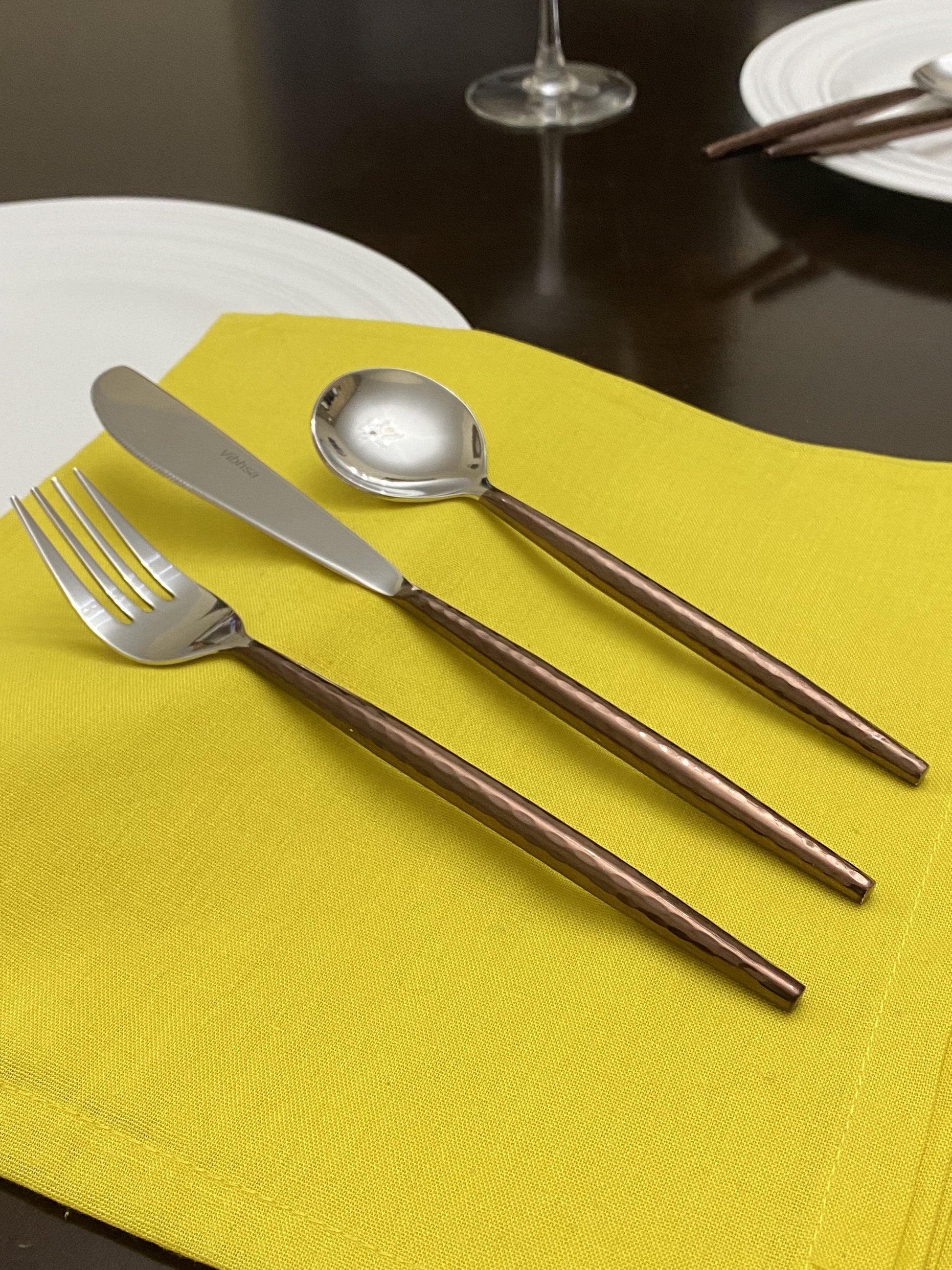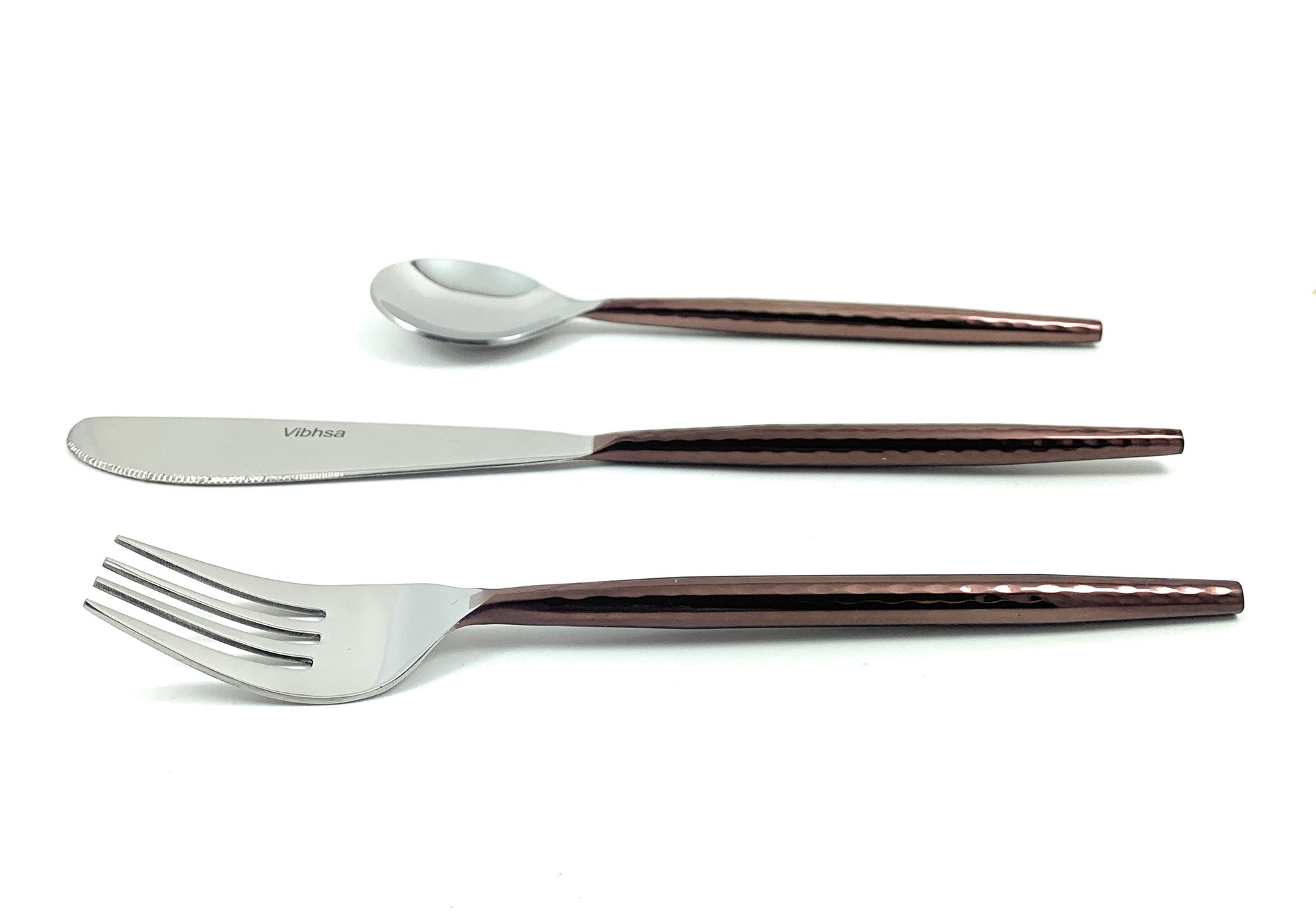 Made by artisan Stainless Steel cutlery set. Hammered designed handle with High Gloss Finish gives a classic look to your parties.