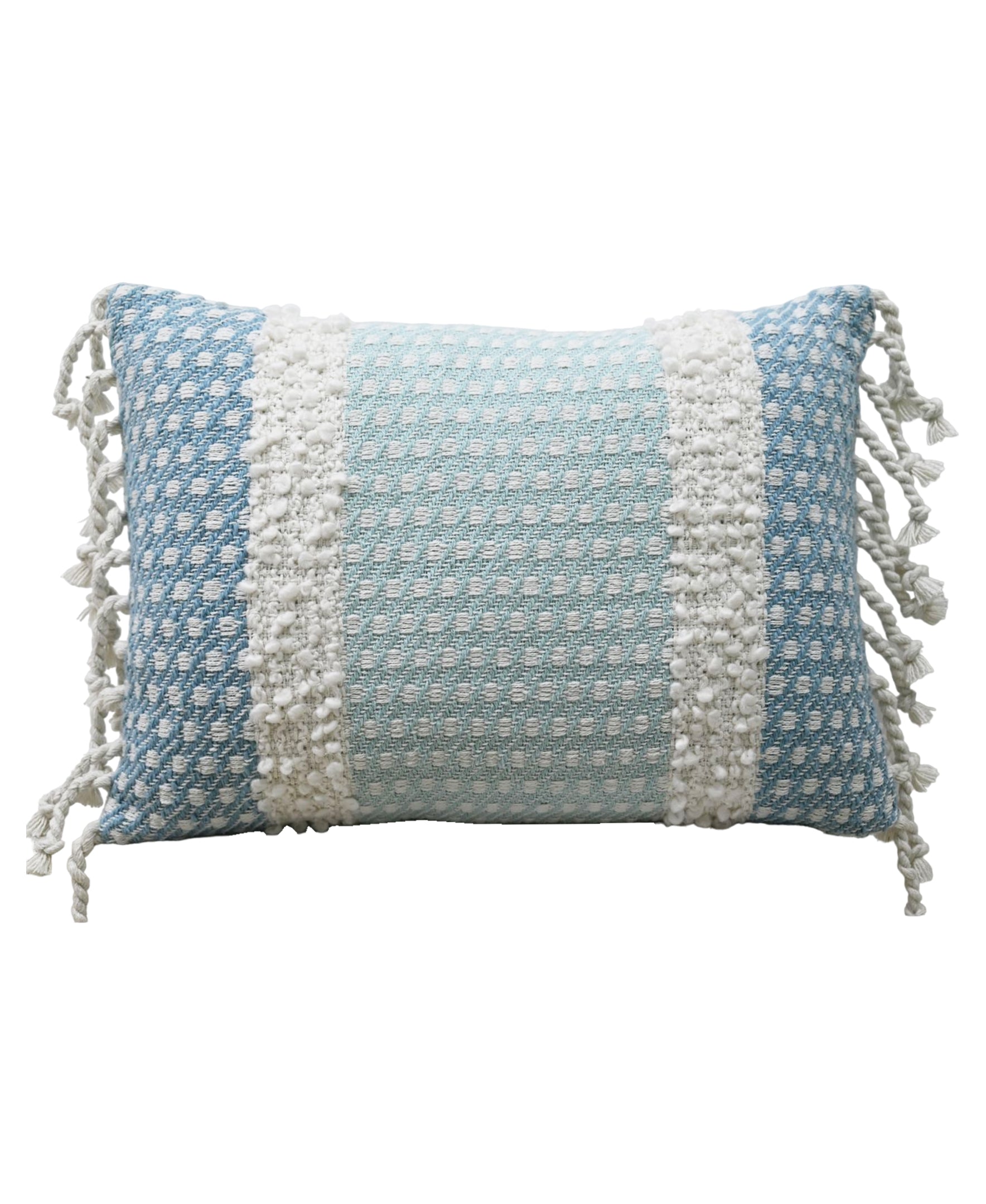 14''X20'' Handwoven pillow with buttknot edging. Includes: 1 Decorative Pillow with high quality insert. Pillow is designed, filled and finished in the USA. 60 Days limited manufacturing warranty. Zipper Closure for easy removal of insert. Back of the pillow has solid color with no pattern. Crafted with care and handwoven to perfection, this pillow's intricate weaving adds a beautiful texture and depth to your space.