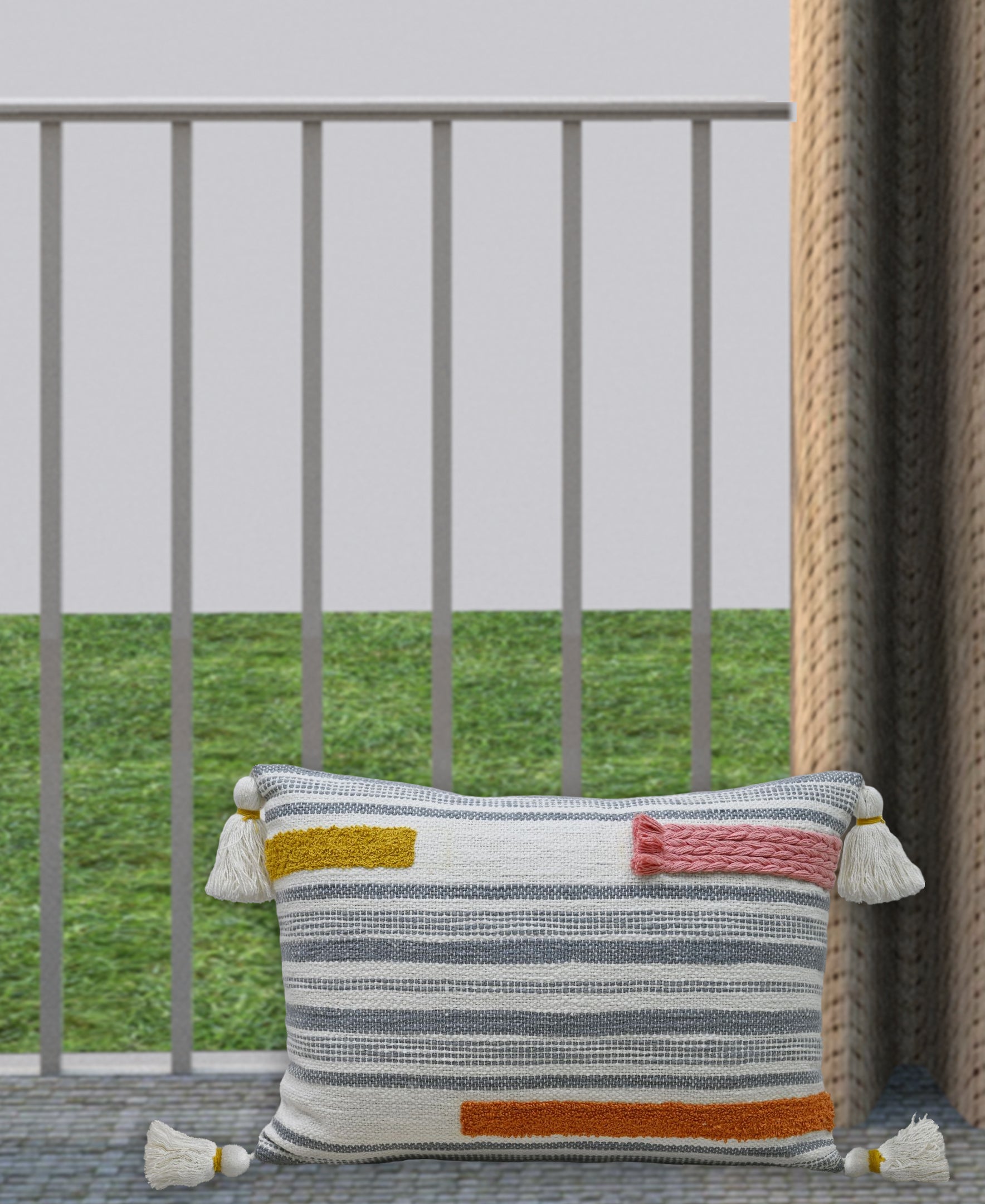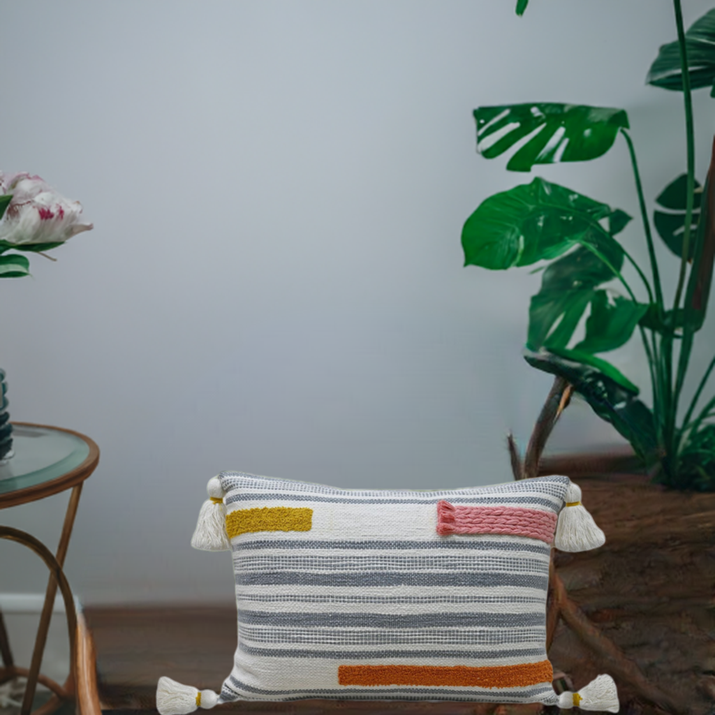 Create a warm and romantic atmosphere in your home with the Vibhsa Handwoven pillow with embroidery braid couching and corner tassels. Its charming braid detailing, delicate corner tassels, and intricate embroidery create a perfect ambiance for you and your loved one.Spot Clean, Cotton, Imported.