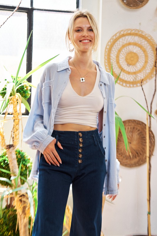 Jade By Jane Lightweight Button Down Flowy Shirt