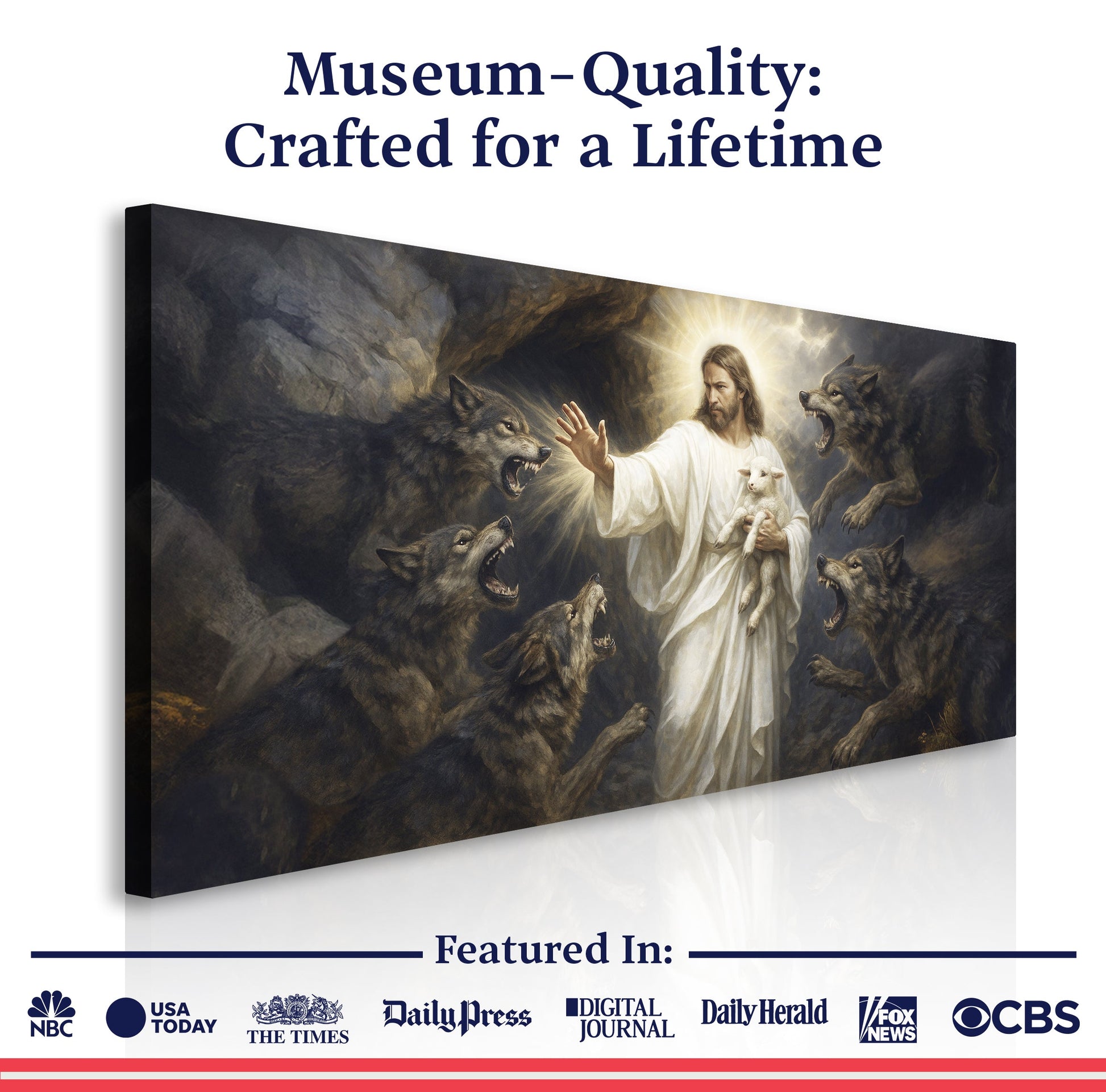 Jesus Protects The Lamb From Wolves Faith Wall Art XIV
