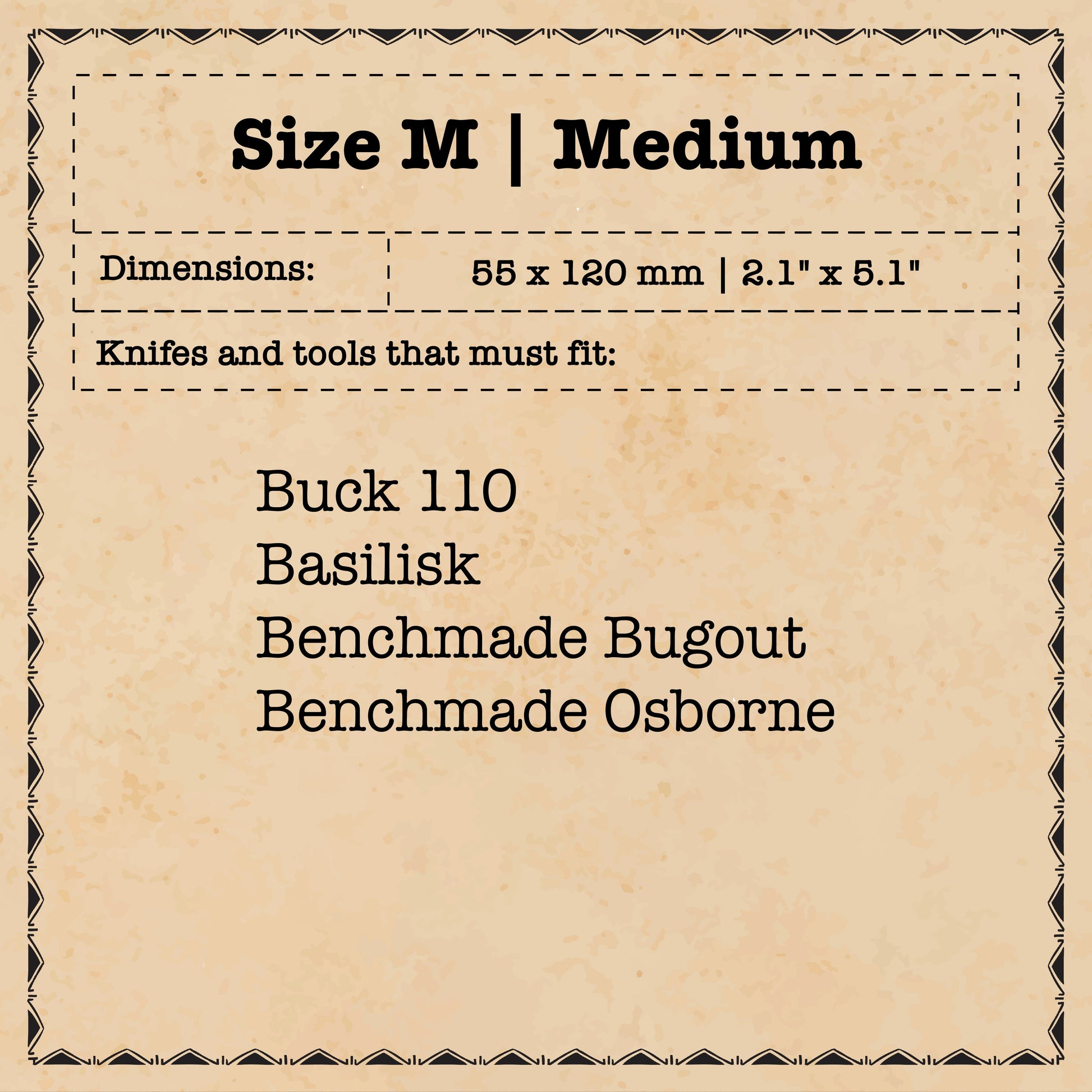 Knifes that must fit: Buck 110, Benchmade Bugout, Osborne, or similar dimensions.