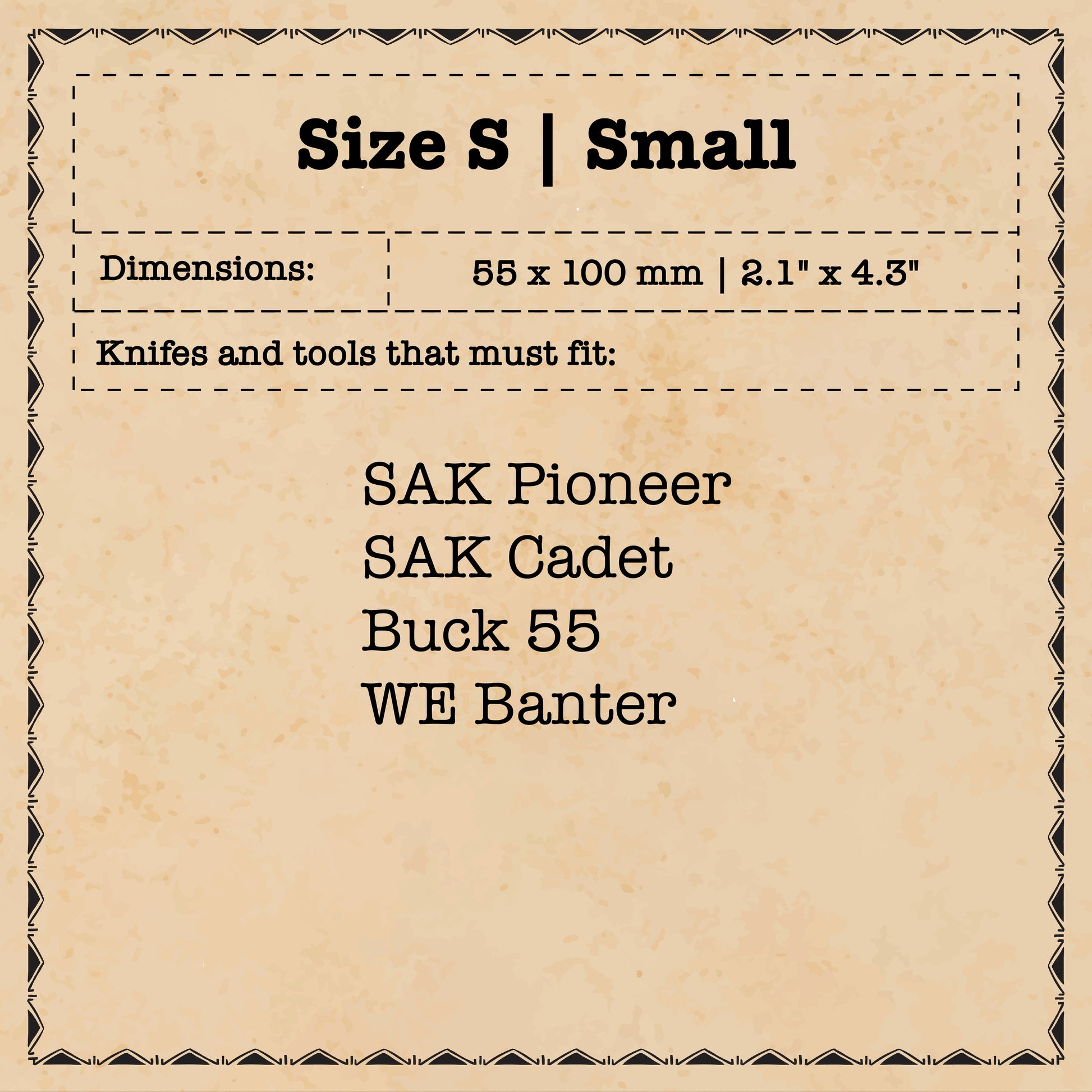 Knifes that must fit: Swiss Army Knife Pioneer, Cadet, Buck 55, WE Banter or other in the same dimensions.