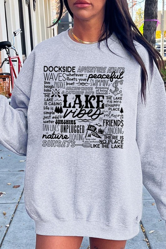 Lake Vibes Subway Art Graphic Fleece Sweatshirts.