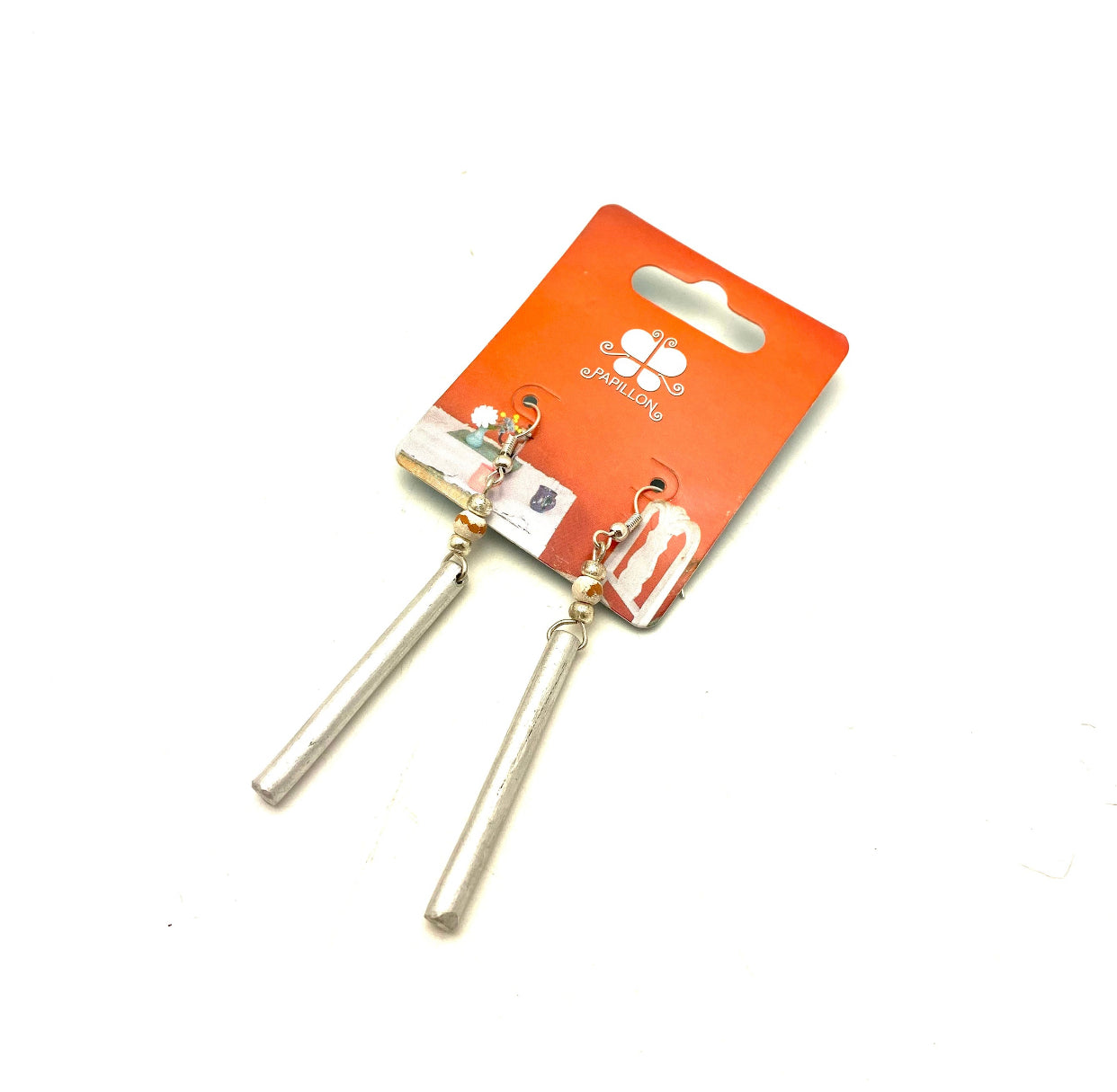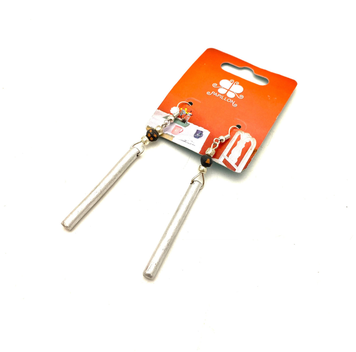 A recycled aluminum pendant elegantly crafted with a single ceramic bead to accent.