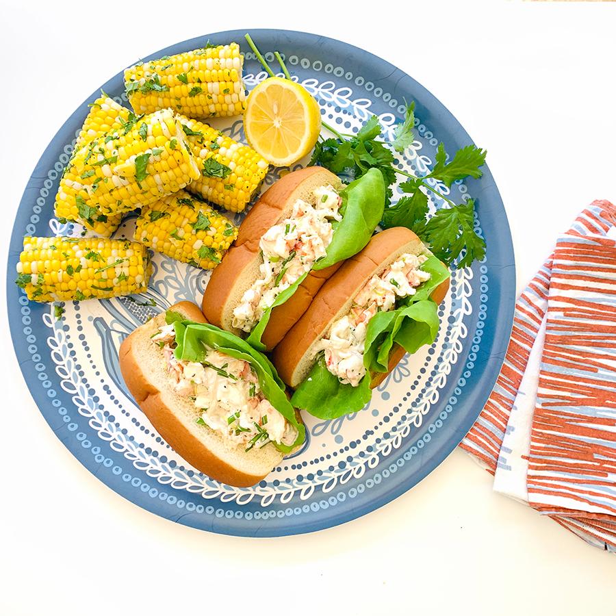 Our Lobster Bake tray, in blue & white design by Sandra Venus, is the perfect size for serving up Lobster Rolls with corn on the cob for those Summer time family meals. Classic New England picnic food.
