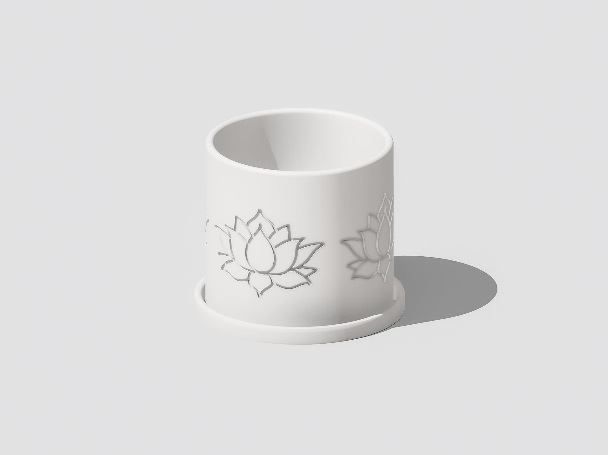 Introducing our 3D-printed plant pot, a harmonious blend of nature-inspired design and modern technology. Wrapped seamlessly around the pot, a continuous relief of stylized lotus flowers adds an elegant touch to your space. Crafted with durable, eco-friendly materials, this plant pot is perfect for showcasing your favorite plants. Enhance your home or office with this unique piece, where functionality meets serene beauty.