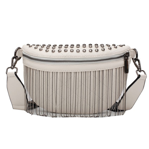 Elevate your ensemble with our meticulously crafted Fringe Studded Cross Body Bag. This sophisticated accessory combines luxurious texture with practical design, featuring cascading fringe details and elegant studwork that catches the light with subtle brilliance. The versatile strap allows for comfortable wear across the body, making it an ideal companion for both daytime engagements and evening soirées. Thoughtfully sized to carry essentials without overwhelming your silhouette.