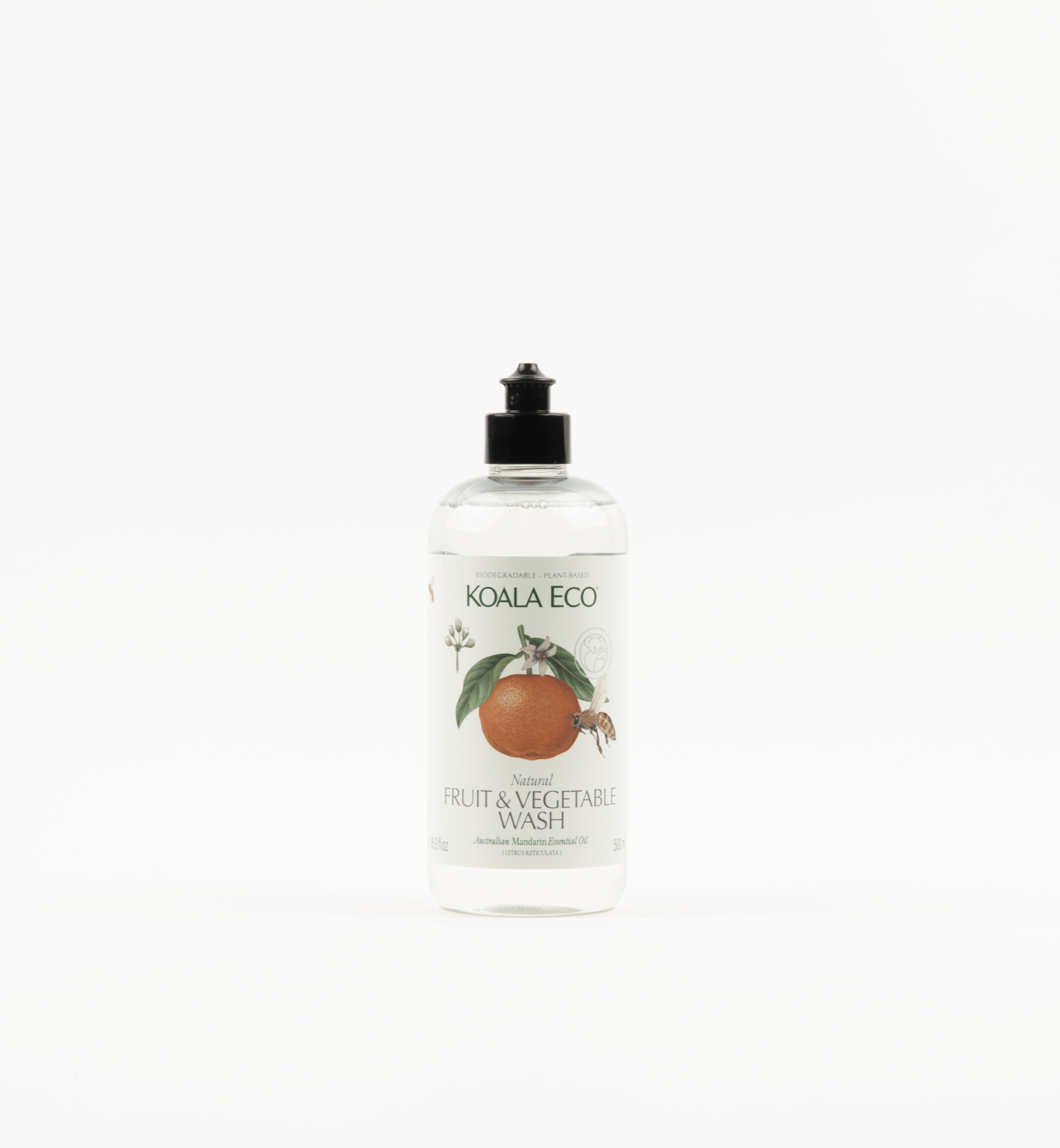 Our Mandarin Fruit & Vegetable Wash removes residual pesticides, oils, waxes and agricultural chemicals from fruit and vegetables, and leaves no aftertaste. Even organically grown produce is vulnerable to the effects of drift spray, human handling, mould spores, and dirt. A simple rinse may not suffice. Koala Eco’s biodegradable and eco-friendly plant-based formula cleans produce without the need for anything toxic.
