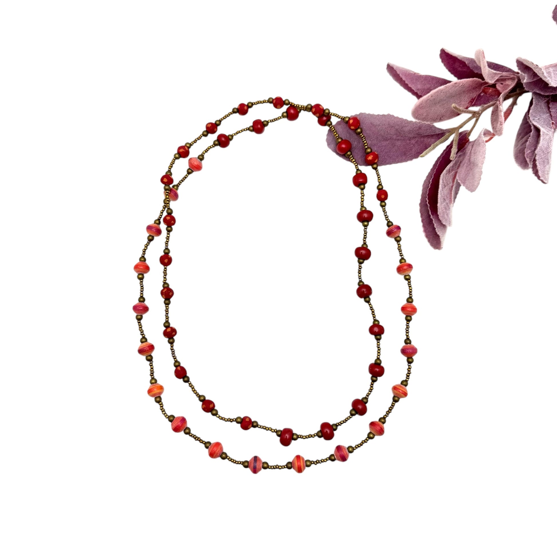 The Ombre necklaces graduate three bead styles into a fun design. Pairs perfectly with our Ombre bracelet and earrings.