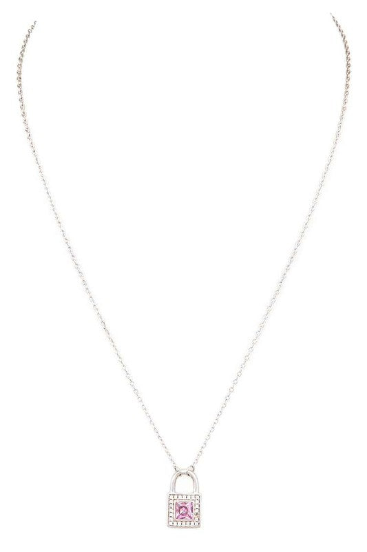 Pink Locket Cubic Zirconia Pendant Necklace