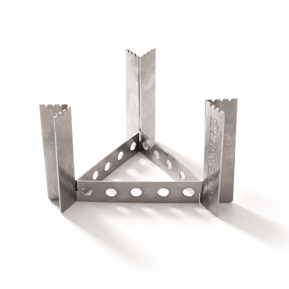 The Collapsible Camp Stove, Cooker, and Trivet is made with stainless steel in Baltimore, Maryland and was designed by Chris’ Dad!