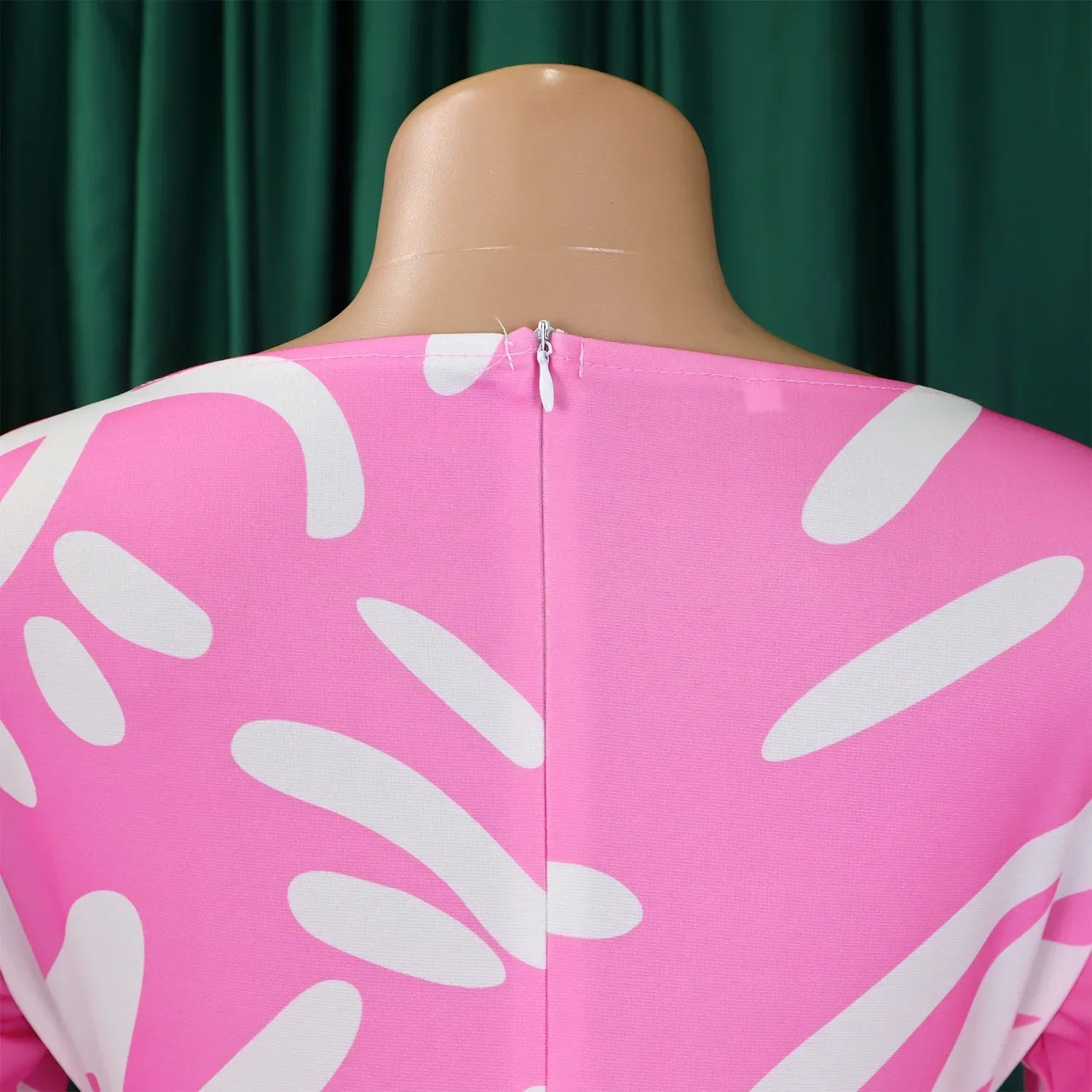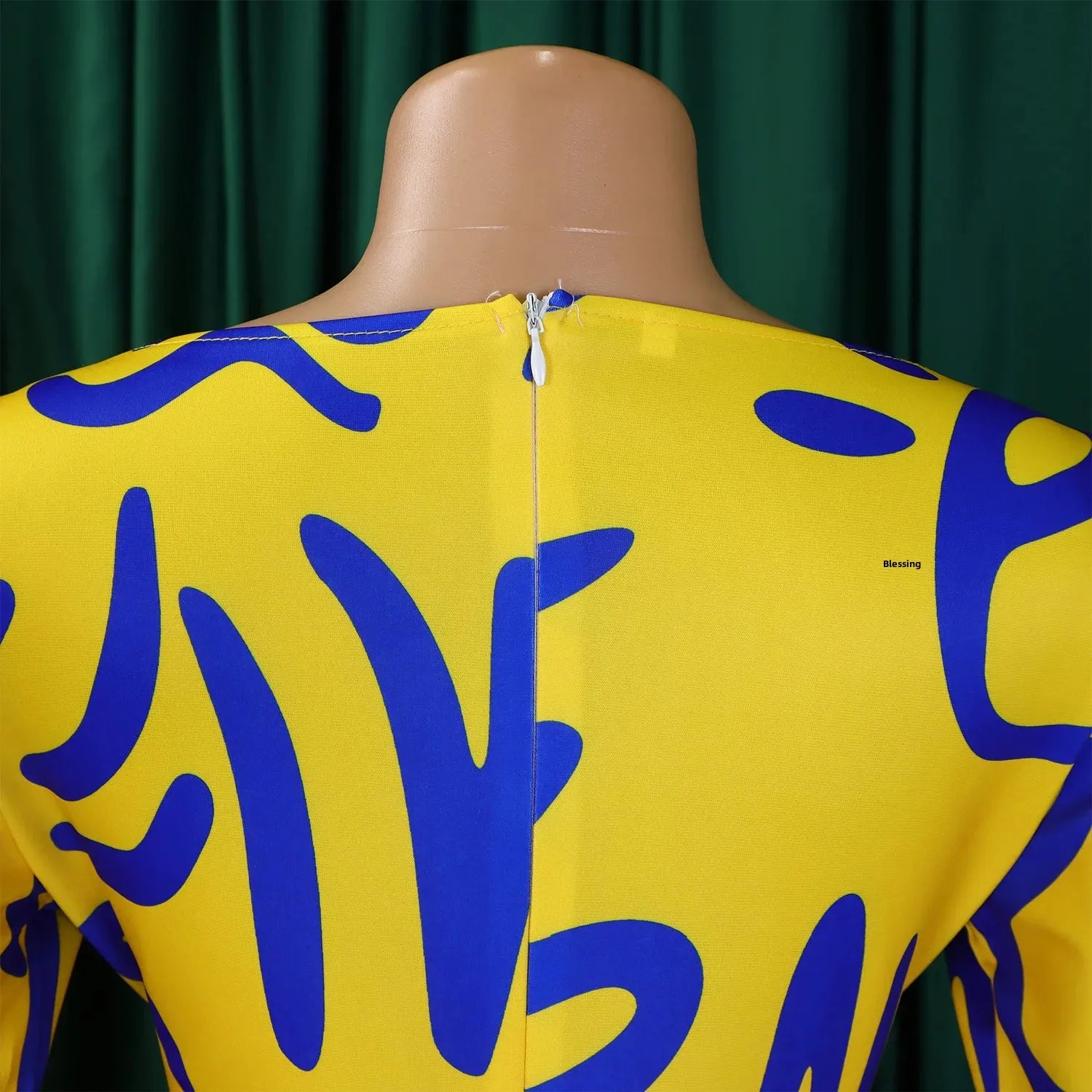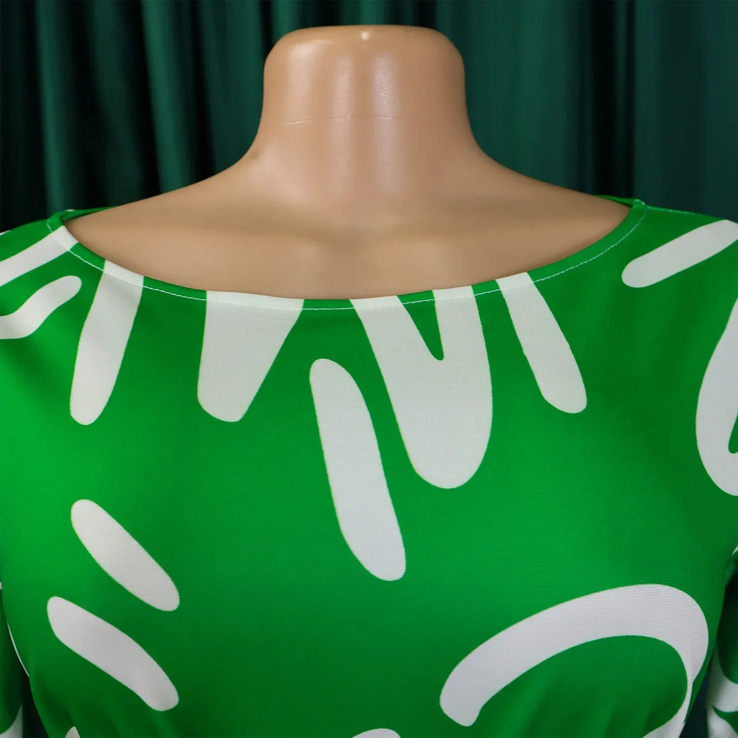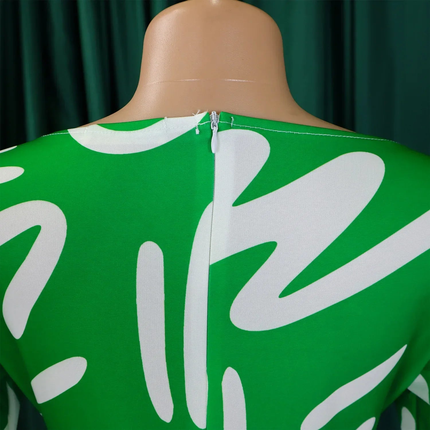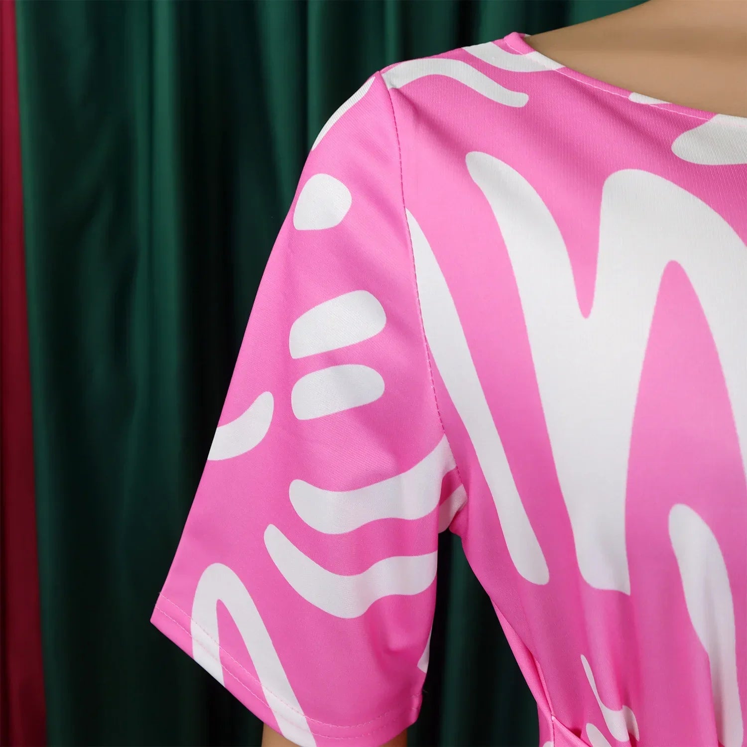 - Summer New Fashion Large Size Printed Belted Dress Elegant Women's Clothing Knee-Length round Neck Short Sleeve Dress