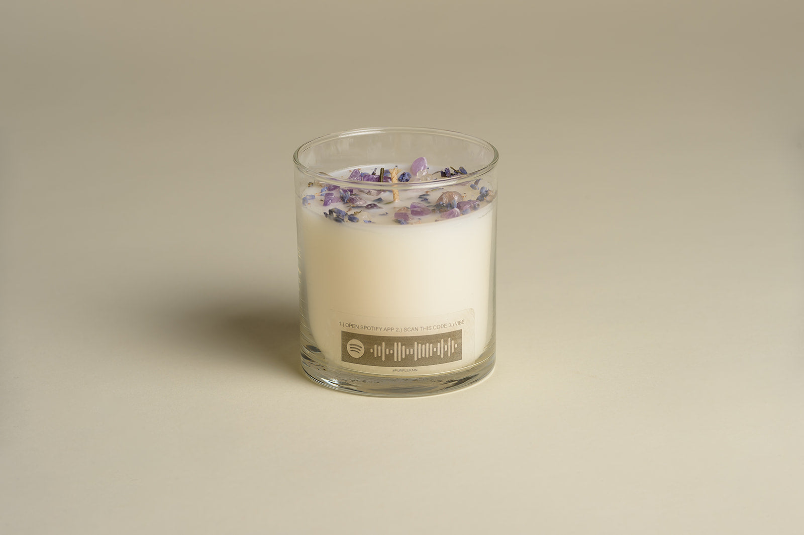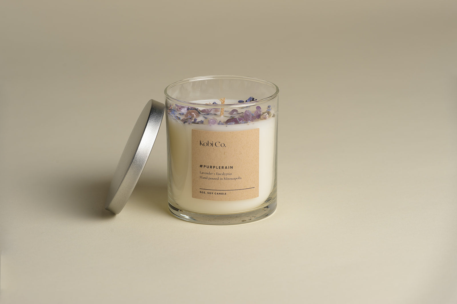 - Our large (9oz.) #PurpleReign candle embellished with sweet dried lavender buds, and polished amethyst crystals