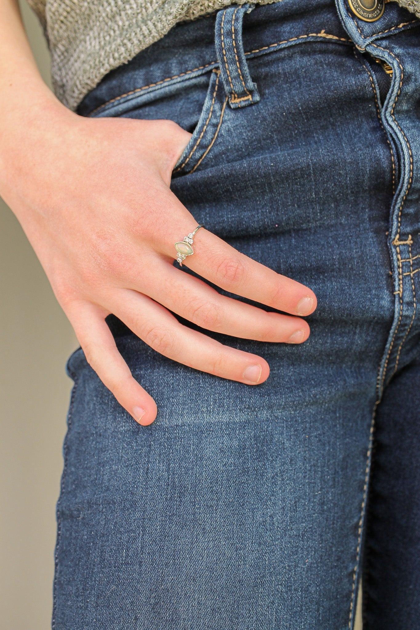 Meet the dreamiest and prettiest ring... The Serena Opal Ring. She has a REAL opal center stone (that is absolutely drool-worthy) and 6 cubic zirconia side stones. It is made with solid 925 sterling silver, so it is not only OUTSTANDING quality (I'm talking fine jeweler in the mall quality) but its also completely hypoallergenic! Its neutral color way is sure to match absolutely anything too!