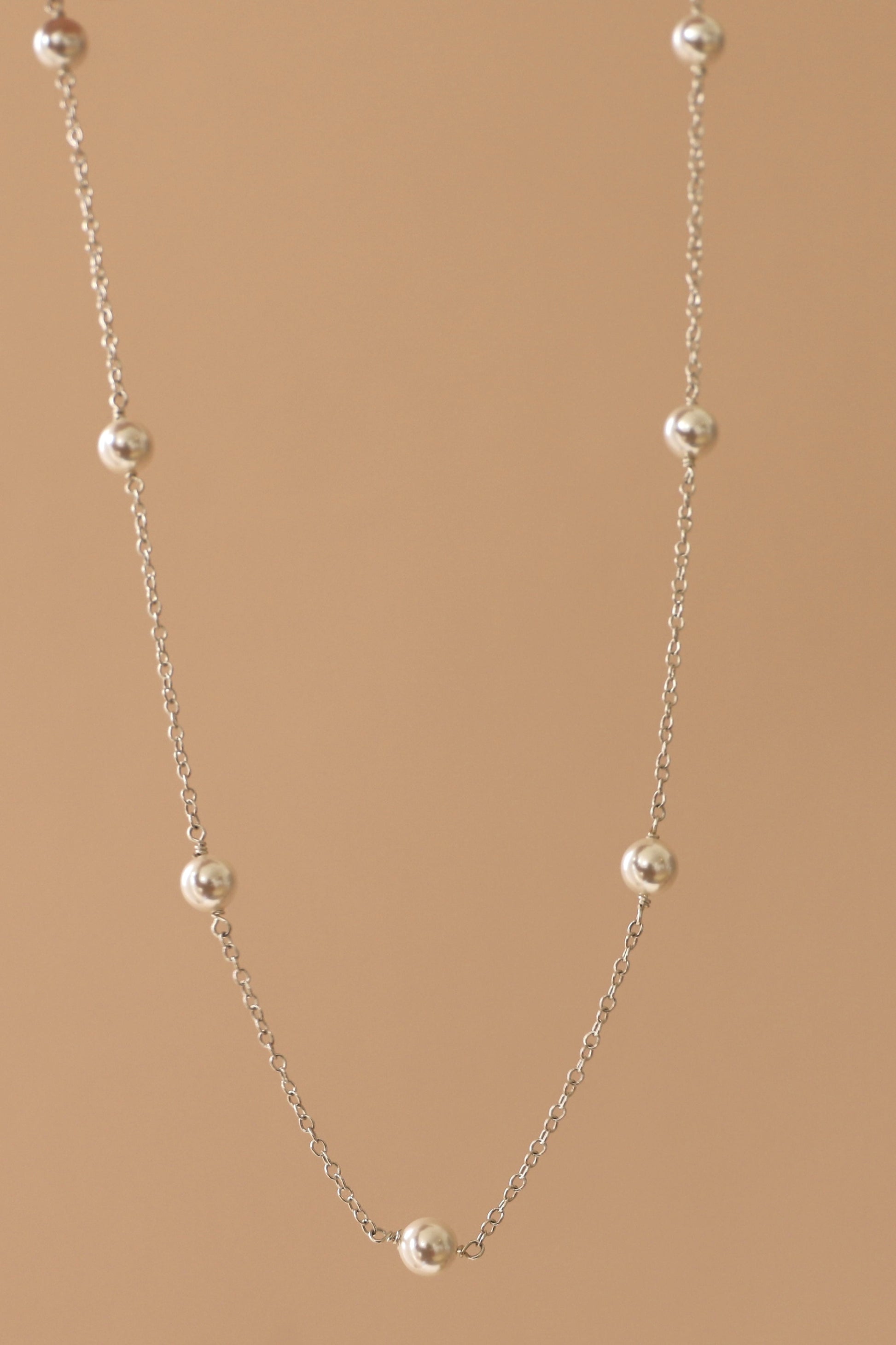 Our Pearl Station Necklace is the perfect addition to your pearl collection. Made with sterling silver cable chain and Swarovski pearls this piece is sure to bring compliments. Pair with some of our classic pearl styles for the complete look.
