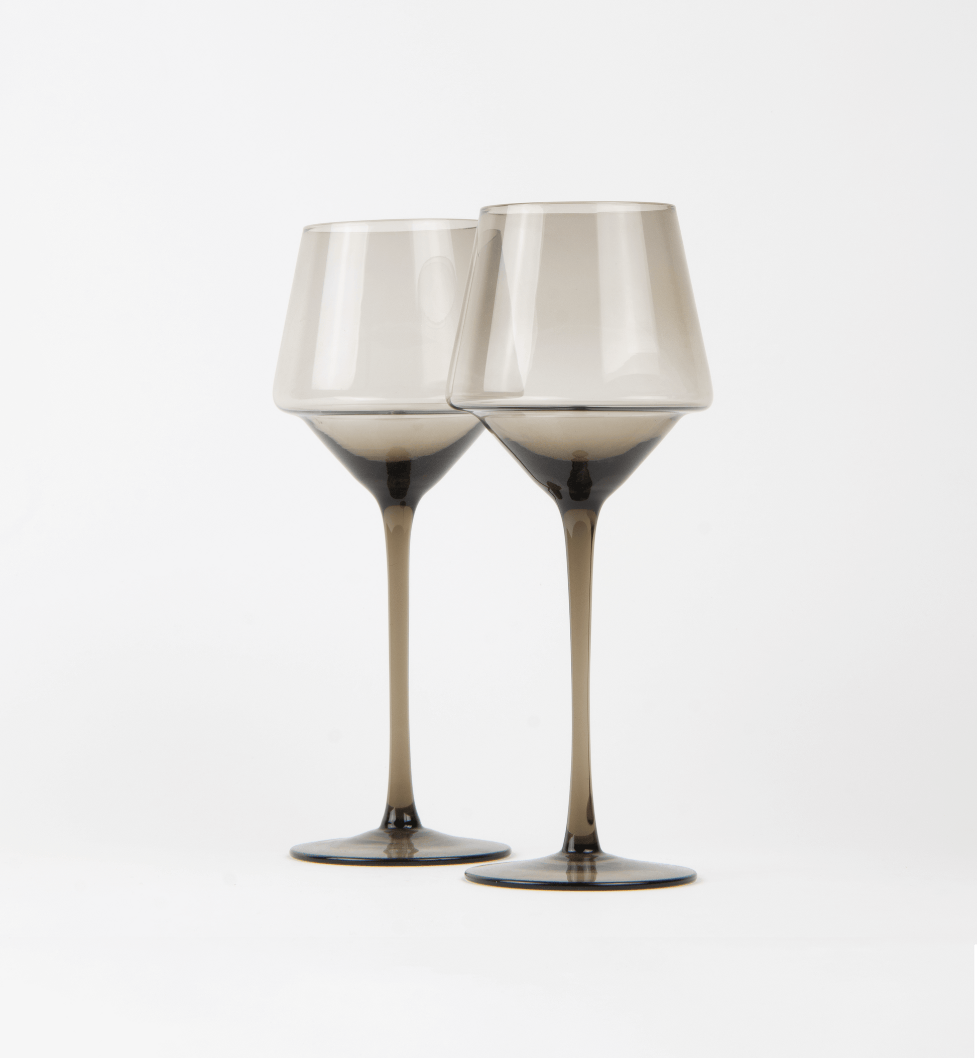 This beautiful smoke gray colored wine glass is sure to be a statement in any home.