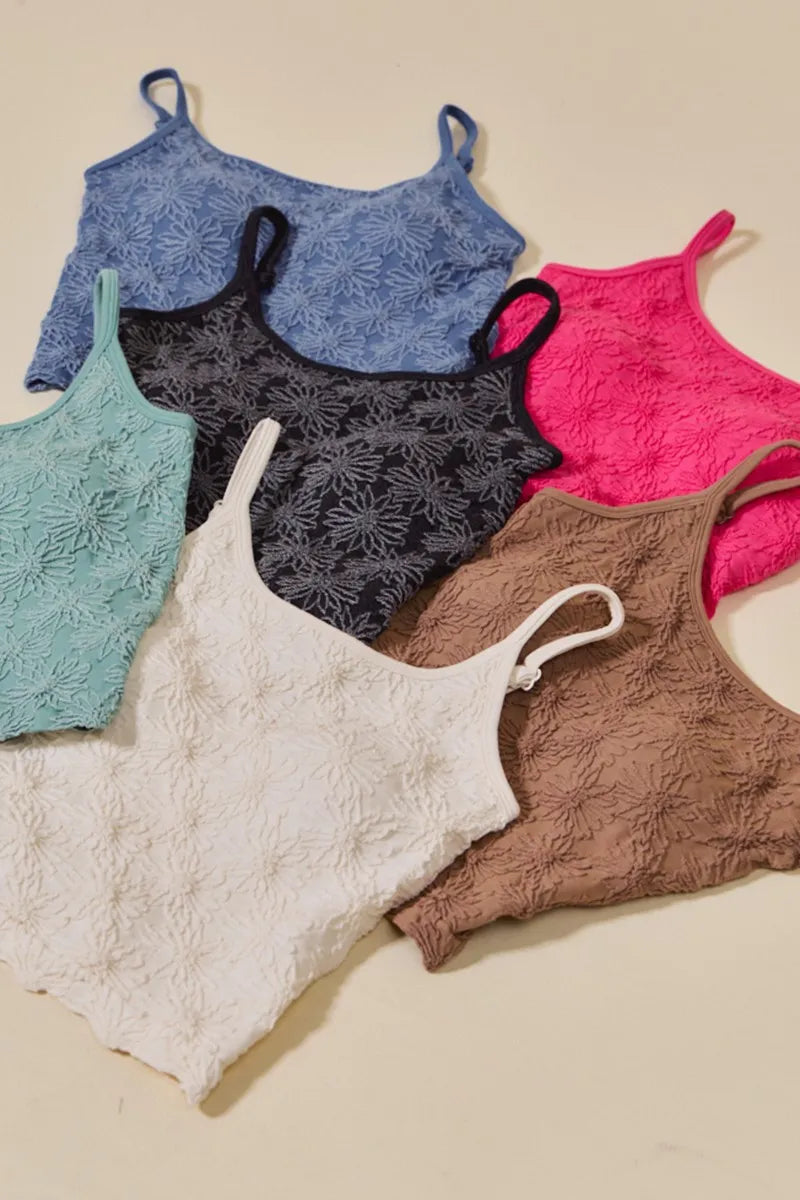 This stylish tank top features a two-tone floral design that is seamless for a clean, polished look. Perfect for layering or wearing on its own, this top is a versatile and trendy addition to any wardrobe. The two-tone color scheme adds a modern touch to the classic floral pattern. Stay comfortable and chic all day long in this fashionable tank top.