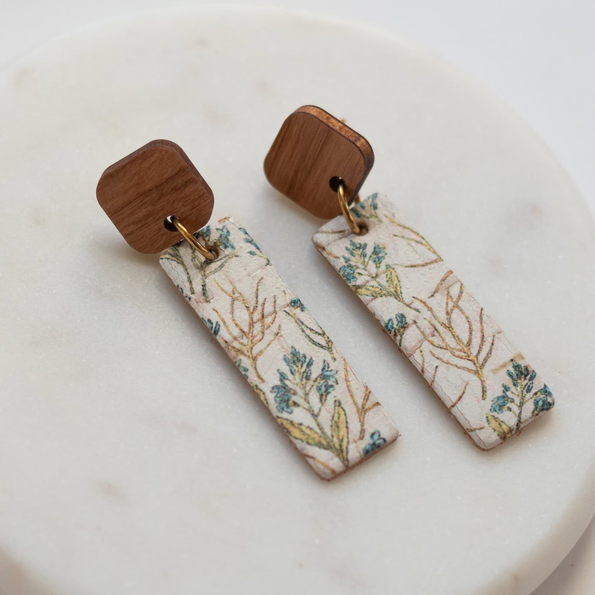 Lighten up your look with our best selling Mia earrings featuring a woodsy floral leather print and wooden post. Handcrafted in our studio, these spring meadow earrings are ethically made and give back to end human trafficking and support fair-paying jobs. Say goodbye to boring accessories and hello to making a positive impact!