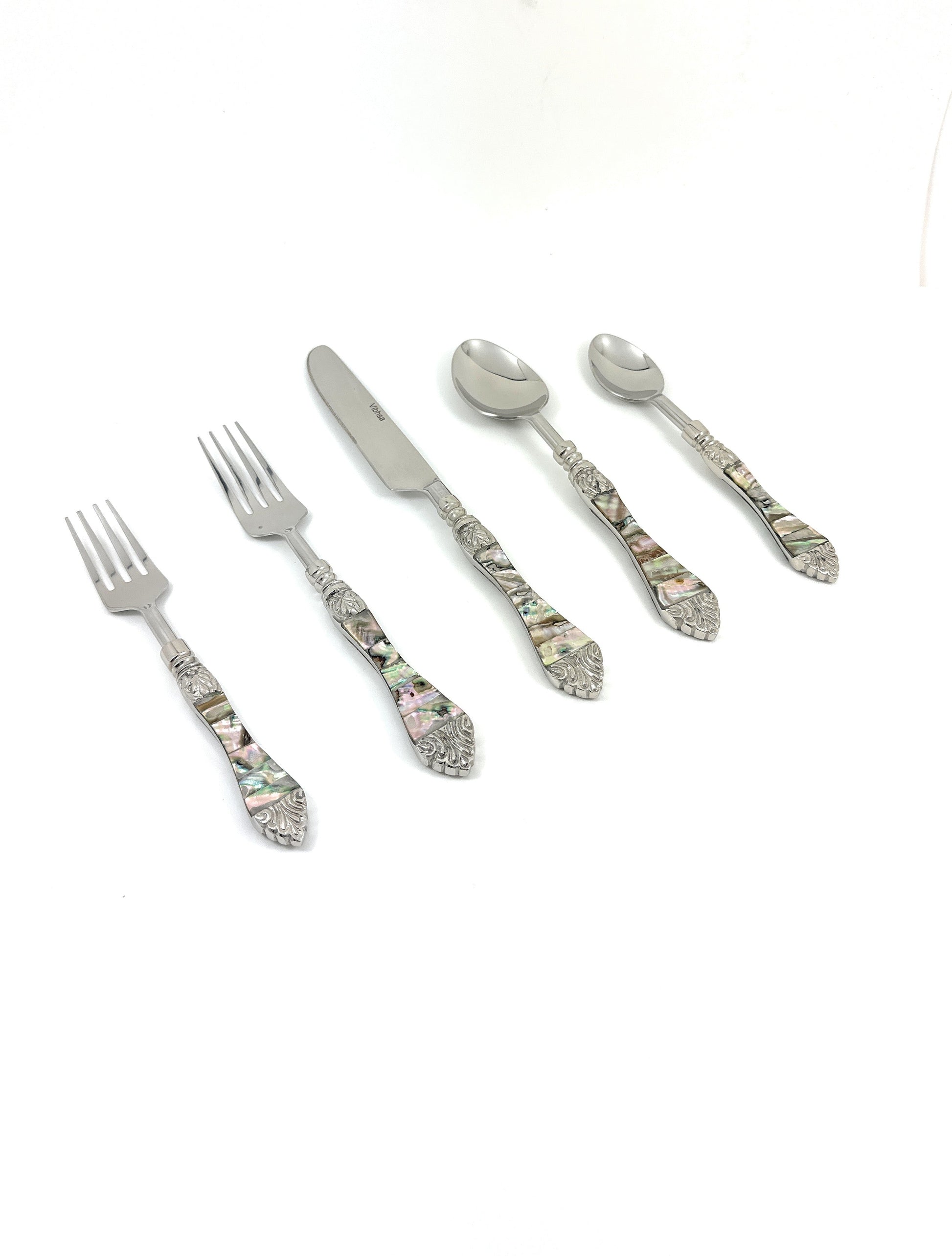 Introducing our Stainless Steel Flatware set of 20 with Seawork Handle, a stunning fusion of functionality and coastal-inspired design. Each piece in this set features handles adorned with intricate seashell and wave patterns, bringing the beauty of the sea to your dining table. Crafted from high-quality stainless steel, this flatware set offers exceptional durability, corrosion resistance, and lasting shine. The weight and balance of each utensil are carefully calibrated to provide a comfortable grip and effortless control. The 20-piece set includes all the essential utensils needed for a complete dining setting, including dinner forks, salad forks, dinner knives, dinner spoons, and teaspoons. Whether you're hosting a beachside gathering or simply want to infuse a touch of coastal charm into your dining experience, this collection is the perfect