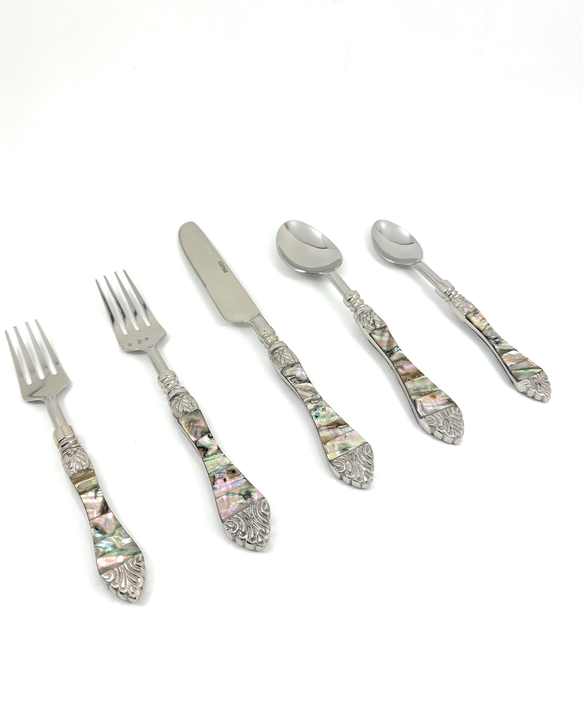 Create a stunning coastal-inspired table setting with this 20-piece Flatware set featuring intricate seashell and wave designs on the handles. Crafted from high-grade stainless steel, the set offers outstanding durability, corrosion resistance, and a lasting shine. The carefully calibrated weight and balance of each piece gives you effortless control and a comfortable grip. Complete with all essential utensils for a full dining experience. Perfect for ocean-inspired gatherings!