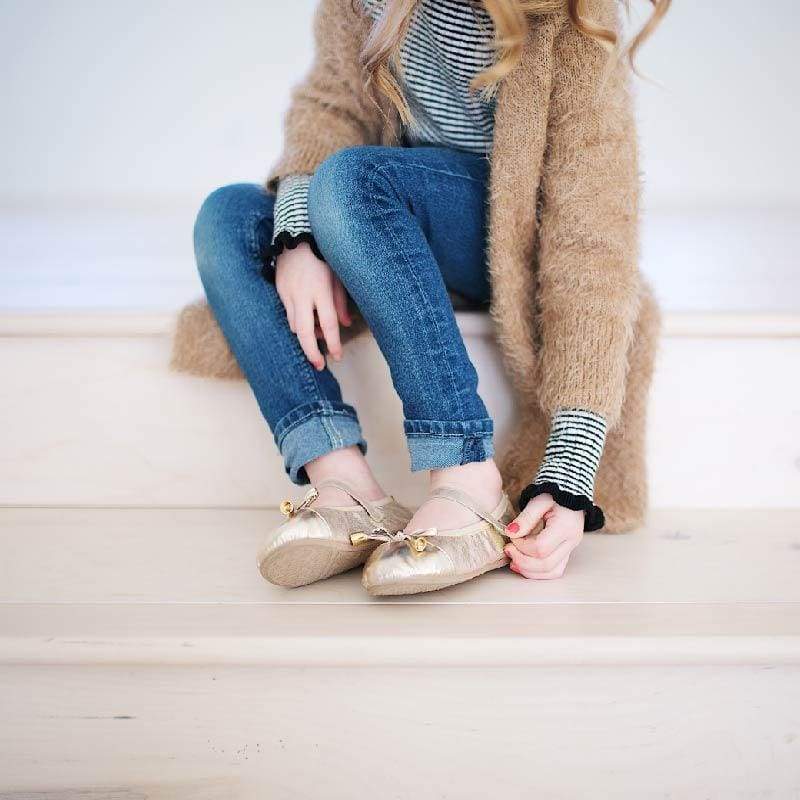 Beautiful and soft girls ballet flats for your little ones, with a matching carrying case! A cushioned rubber sole makes these ideal for running around the house or dressing up to be a flower girl in a wedding, and the hint of sparkle makes them stand out in any girl's shoe collection.