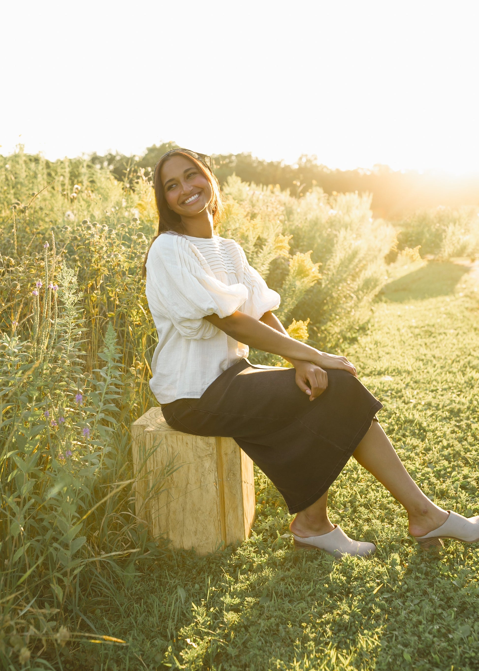 The Tiffany Raw Hem Midi Skirt is a must-have staple for effortless, everyday style. Designed with a sleek straight-cut silhouette, this neutral black denim skirt offers a flattering fit with just the right amount of stretch for all-day comfort. The four-button front adds a touch of charm and visual interest, while the raw hem gives it a modern edge. A short back slit enhances ease of movement, making this midi skirt both stylish and practical. Thoughtfully designed with functionality in mind, it features classic five-pocket styling and belt loops for versatility. The subtle distressing and washed black tone create a timeless, lived-in look that pairs effortlessly with everything from casual tees to cozy knits. Finished with our signature Inherit tone-on-tone faux leather logo patch on the back, this skirt embodies our commitment to quality and intentional design. A go-to for any wardrobe, this piece is truly threaded with purpose™!